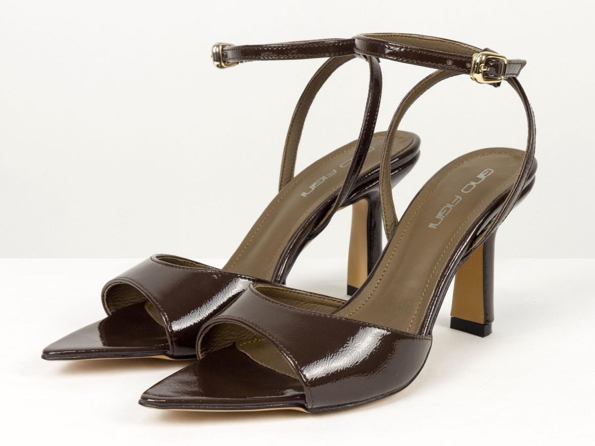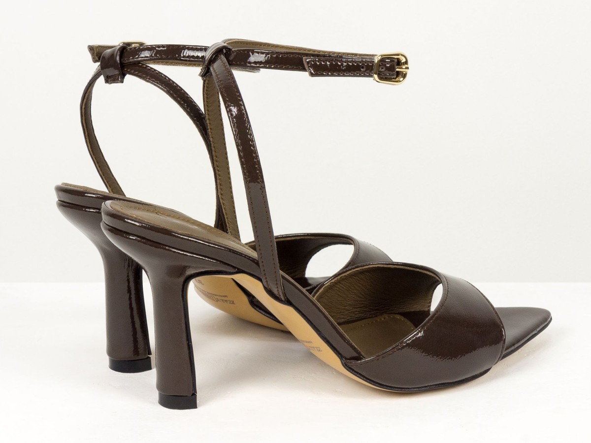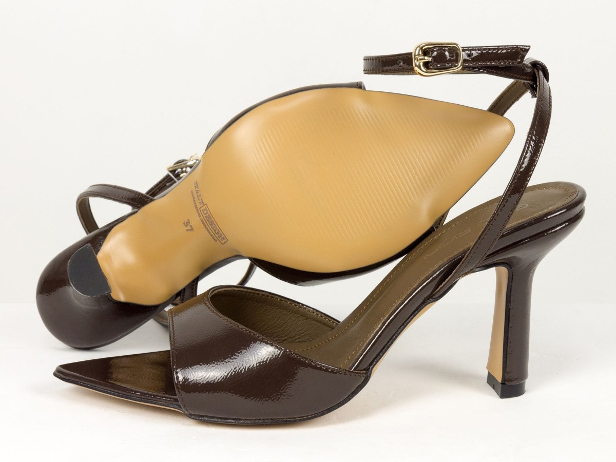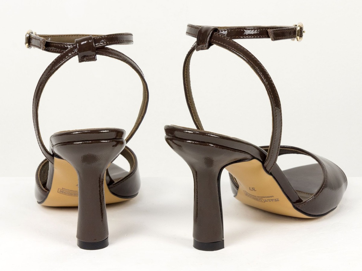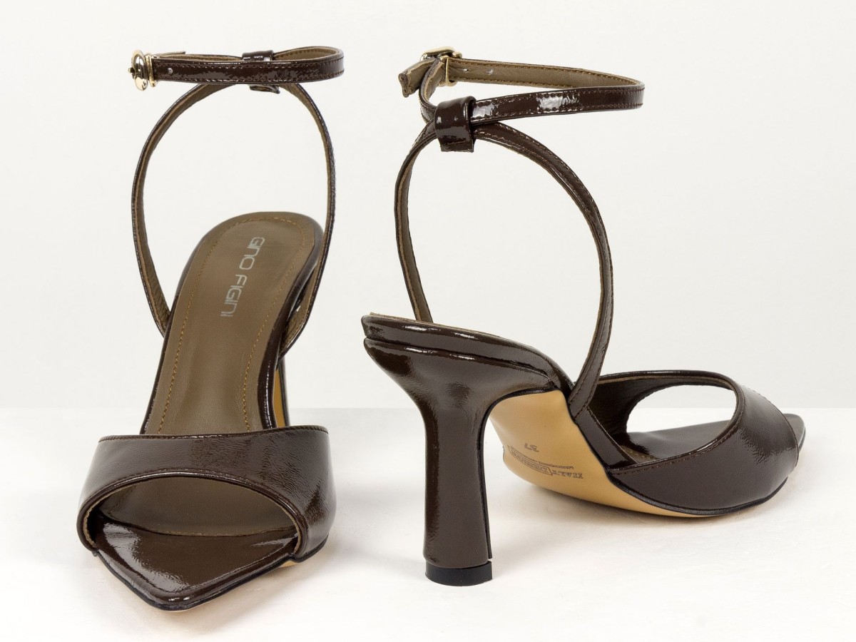 Витончені босоніжки з натуральної шкіри наплак у глибокому відтінку гіркого шоколаду - акцентна пара для елегантних образів.