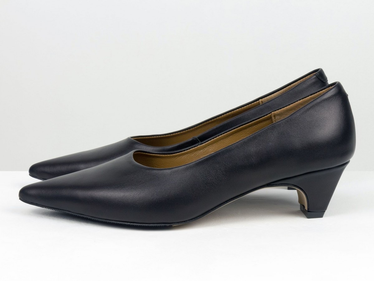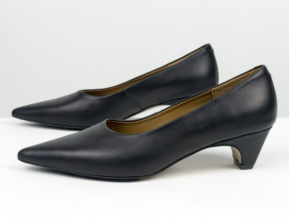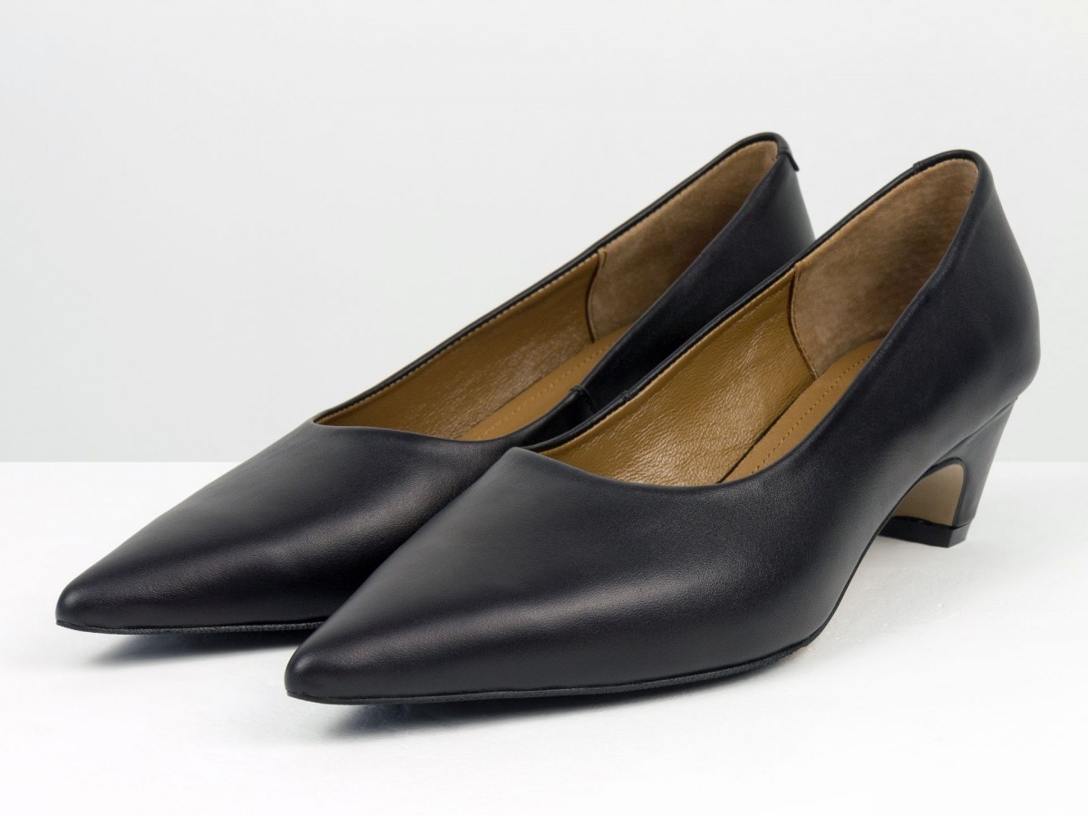 Стильные женские лодочки из натуральной кожи в благородном черном оттенке. Элегантный заостренный носок придает изящество, а невысокий каблук-чарочка обеспечивает комфорт при ходьбе. Идеальный выбор для работы, деловых встреч или вечерних выходов. Сочетают в себе классический дизайн и удобство на каждый день.