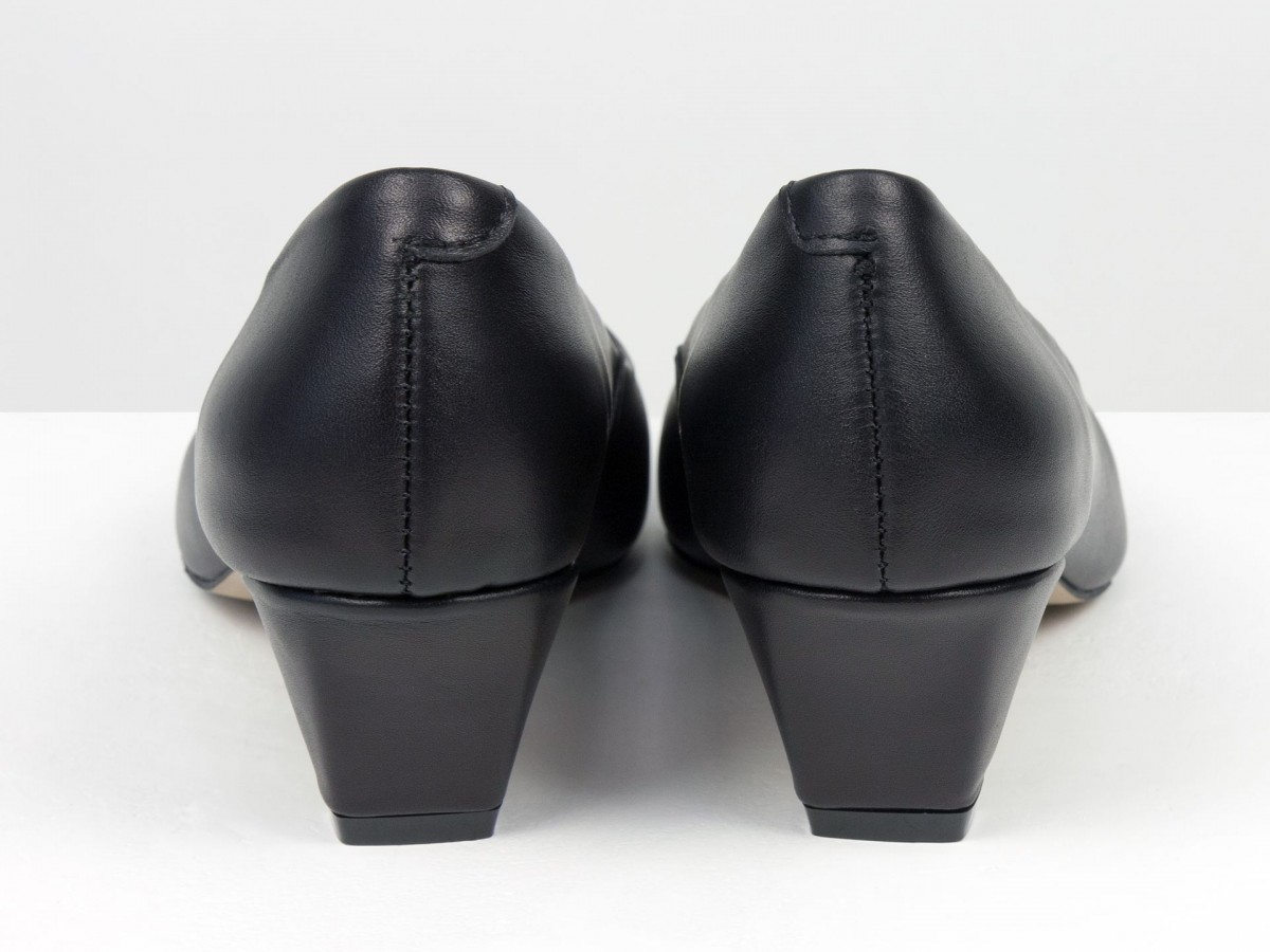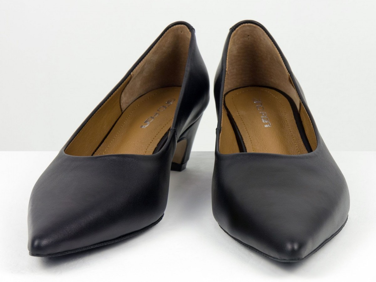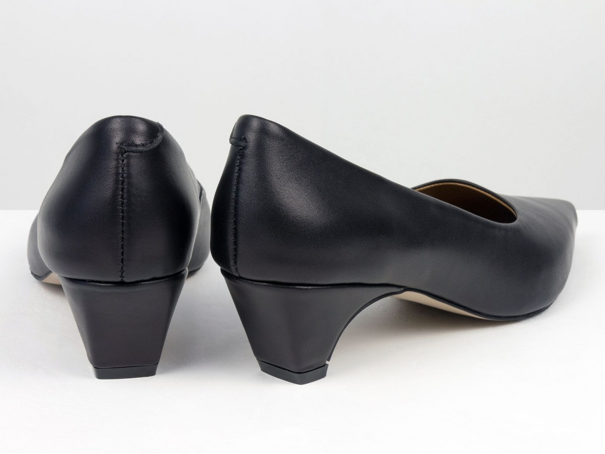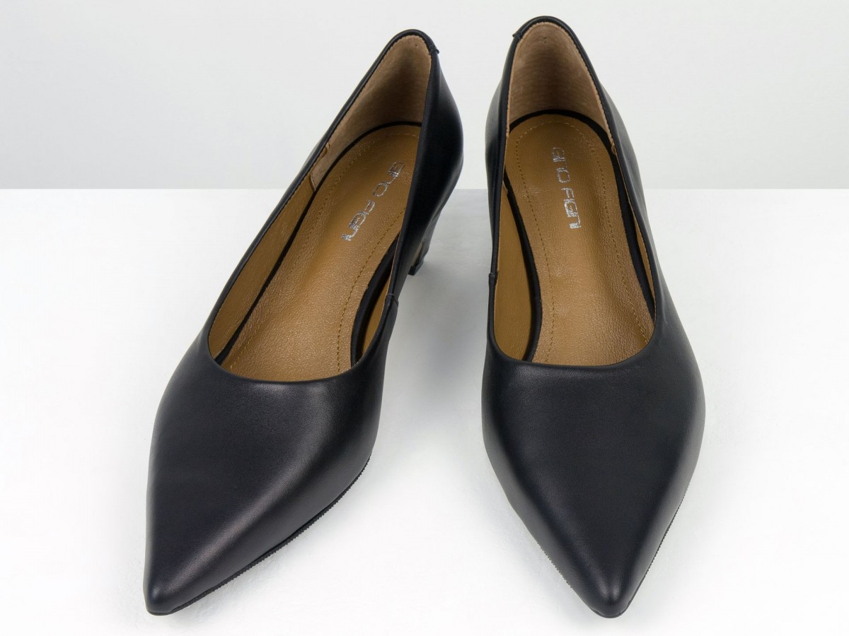 Стильные женские лодочки из натуральной кожи в благородном черном оттенке. Элегантный заостренный носок придает изящество, а невысокий каблук-чарочка обеспечивает комфорт при ходьбе. Идеальный выбор для работы, деловых встреч или вечерних выходов. Сочетают в себе классический дизайн и удобство на каждый день.