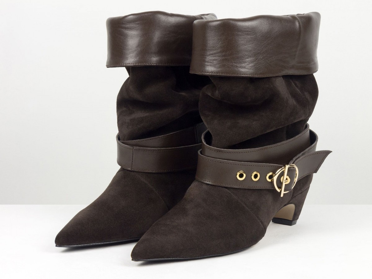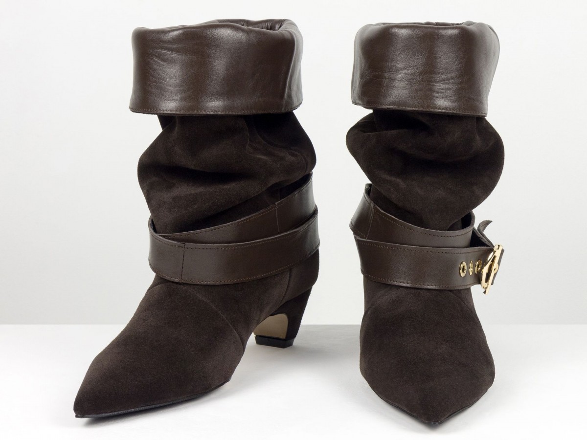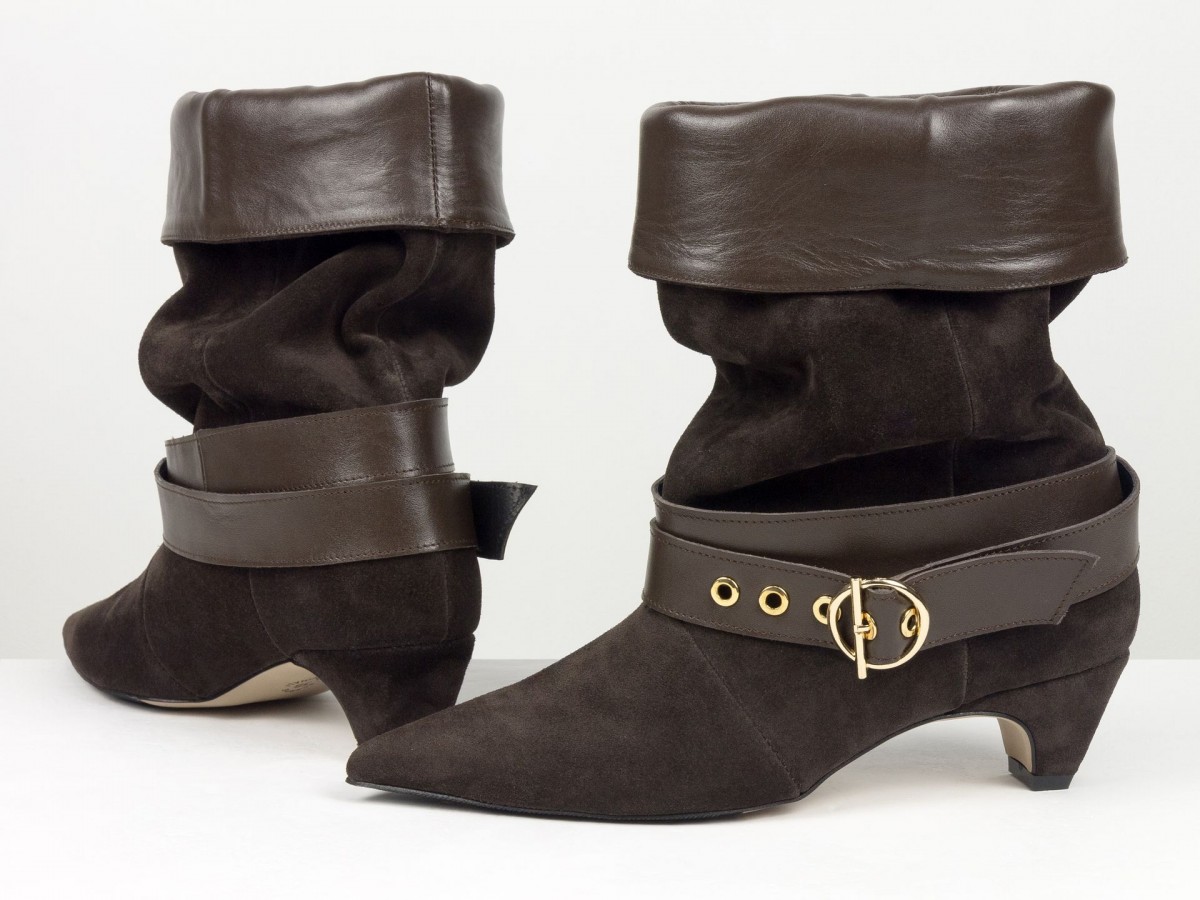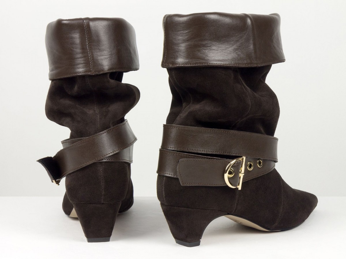 Эти ботинки - настоящий must-have сезона, созданный для женщин, которые ценят стиль, изящество и неповторимость. Модель выполнена из премиальной мягкой натуральной замши в насыщенном шоколадном оттенке, который выглядит роскошно и благородно.