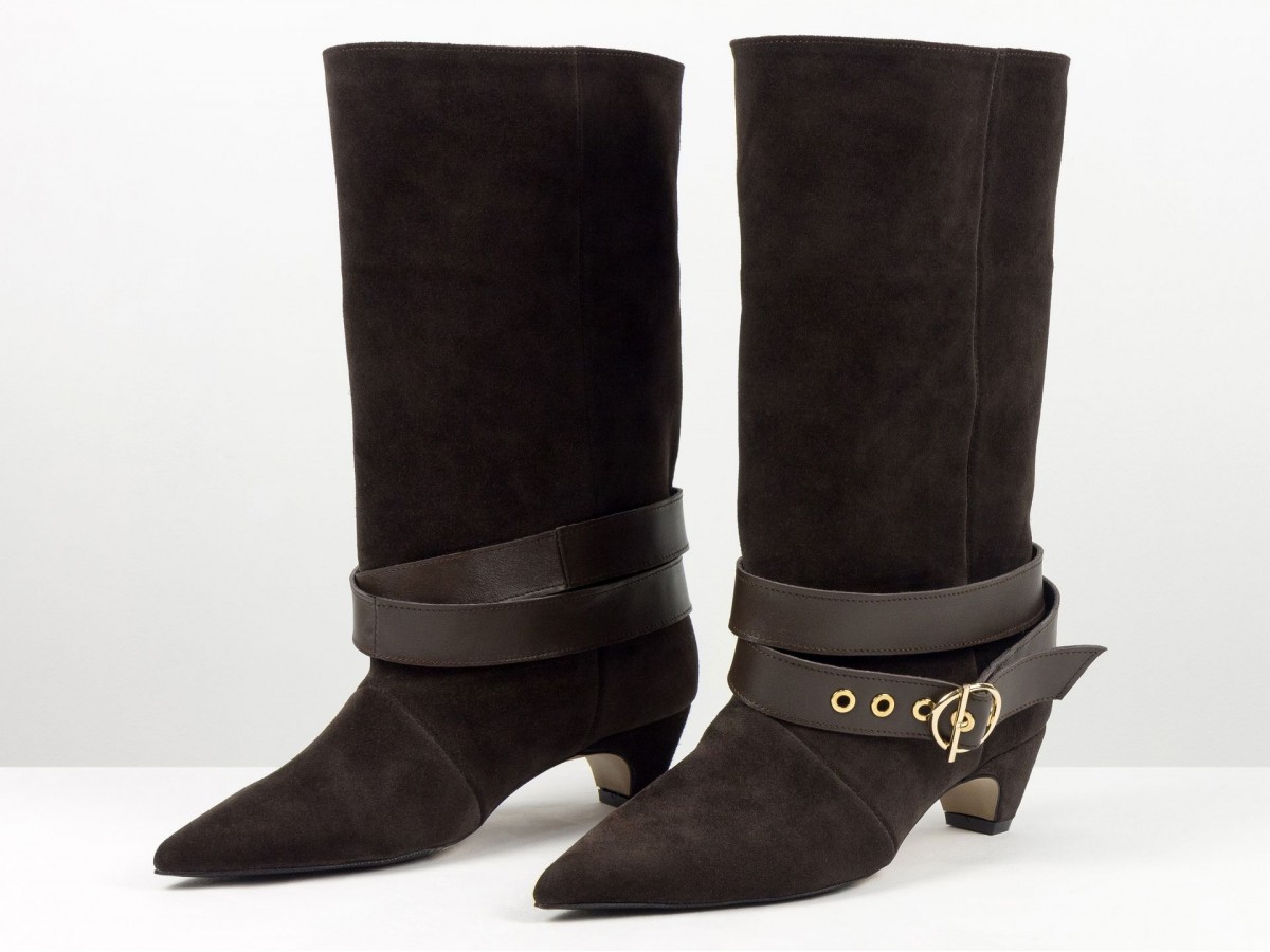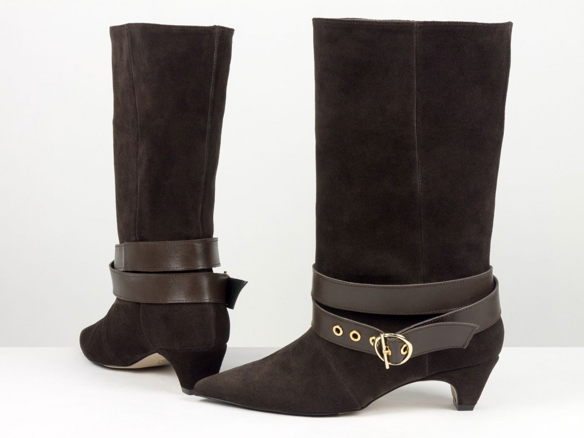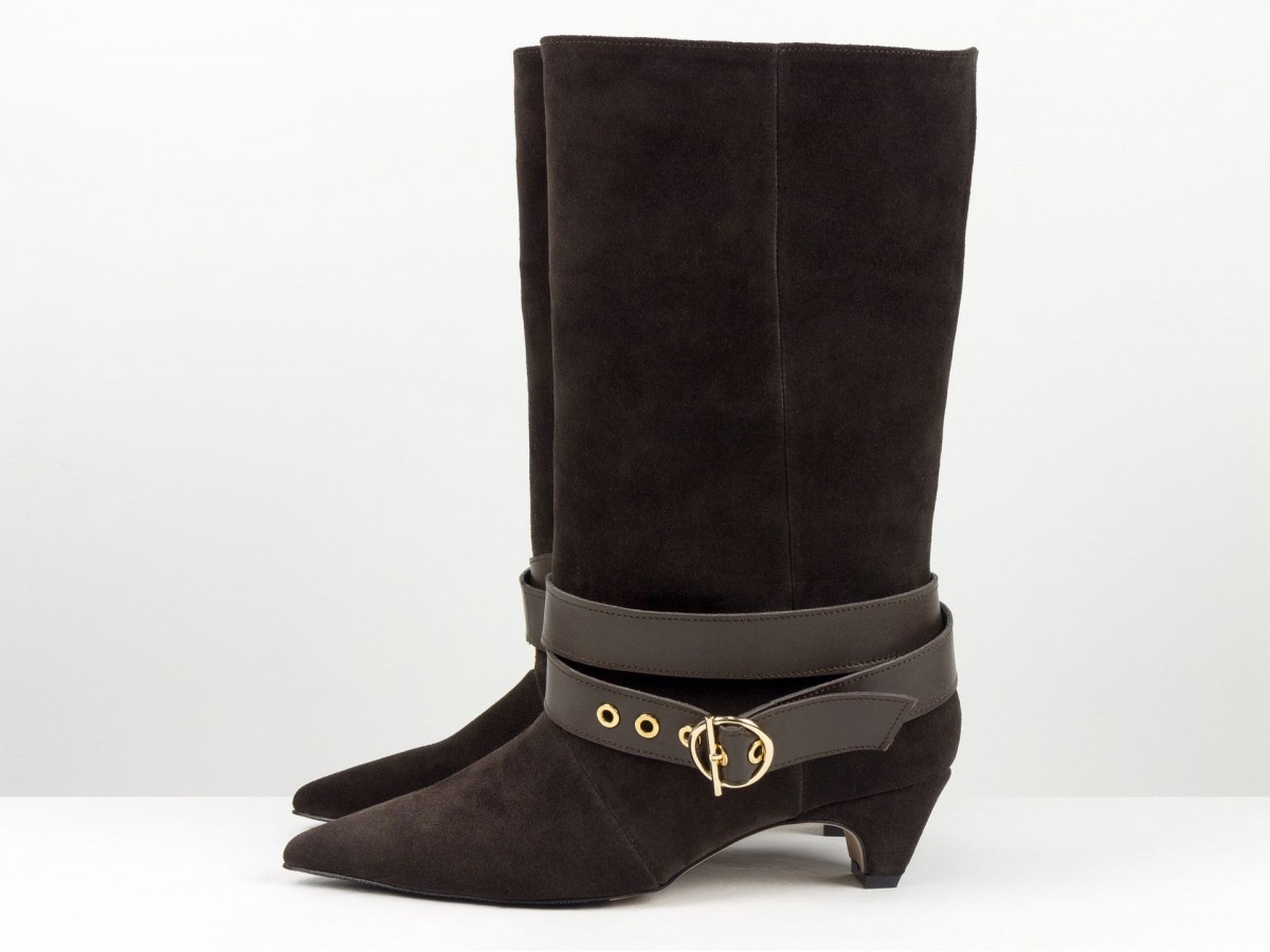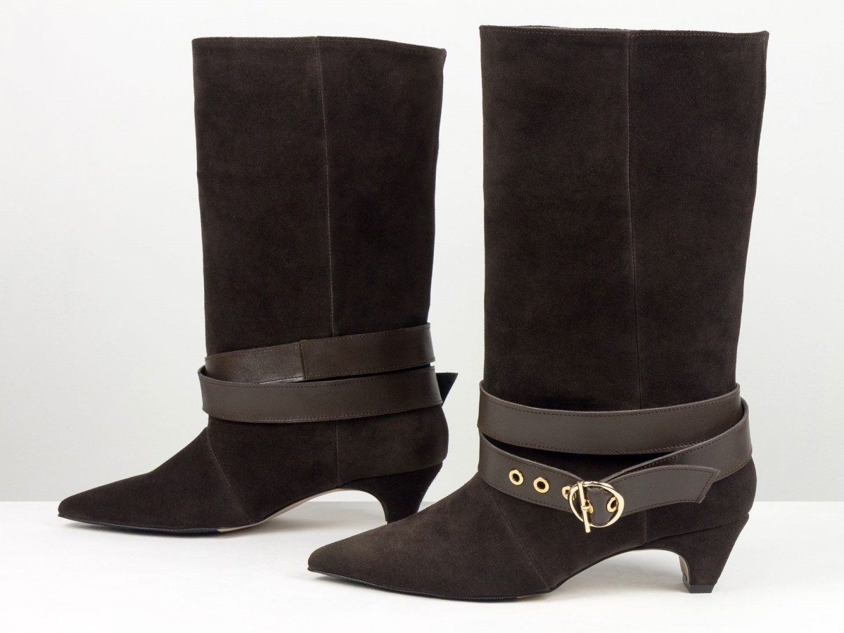 Эти ботинки - настоящий must-have сезона, созданный для женщин, которые ценят стиль, изящество и неповторимость. Модель выполнена из премиальной мягкой натуральной замши в насыщенном шоколадном оттенке, который выглядит роскошно и благородно.