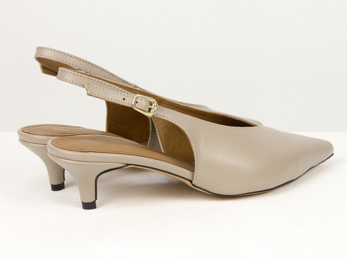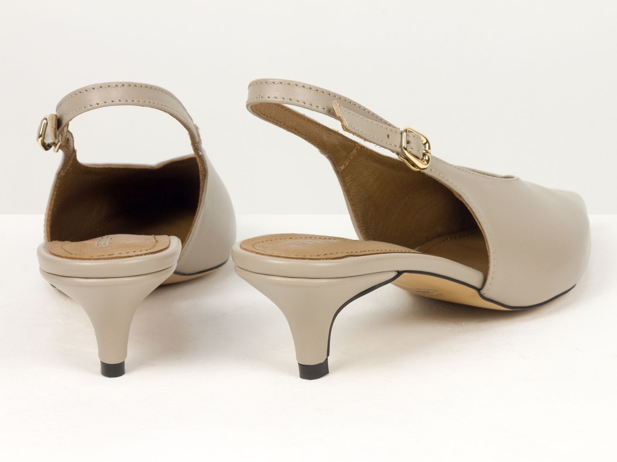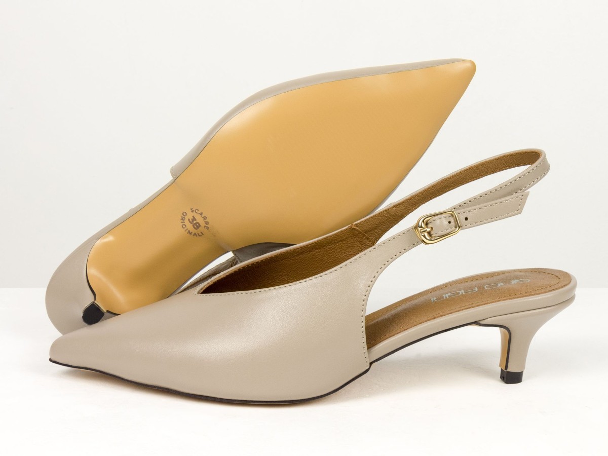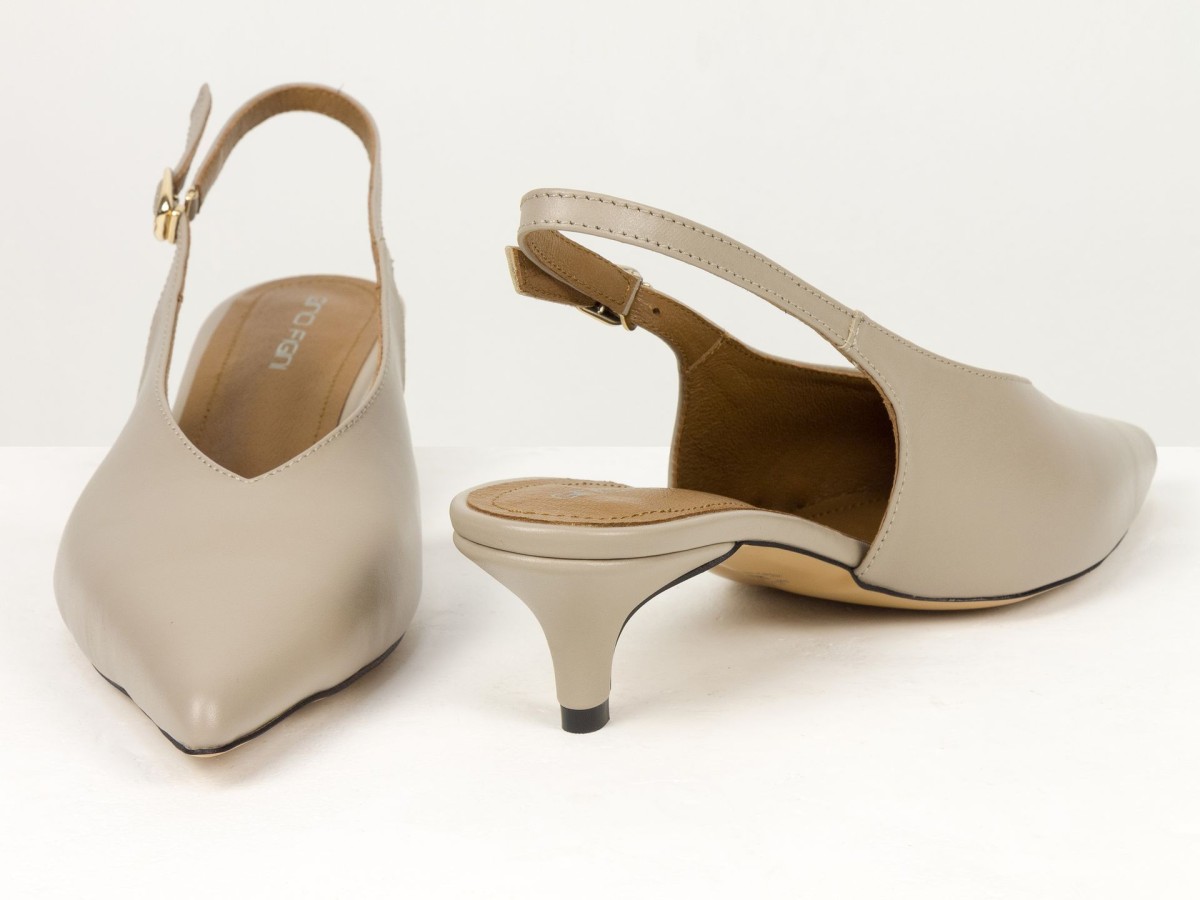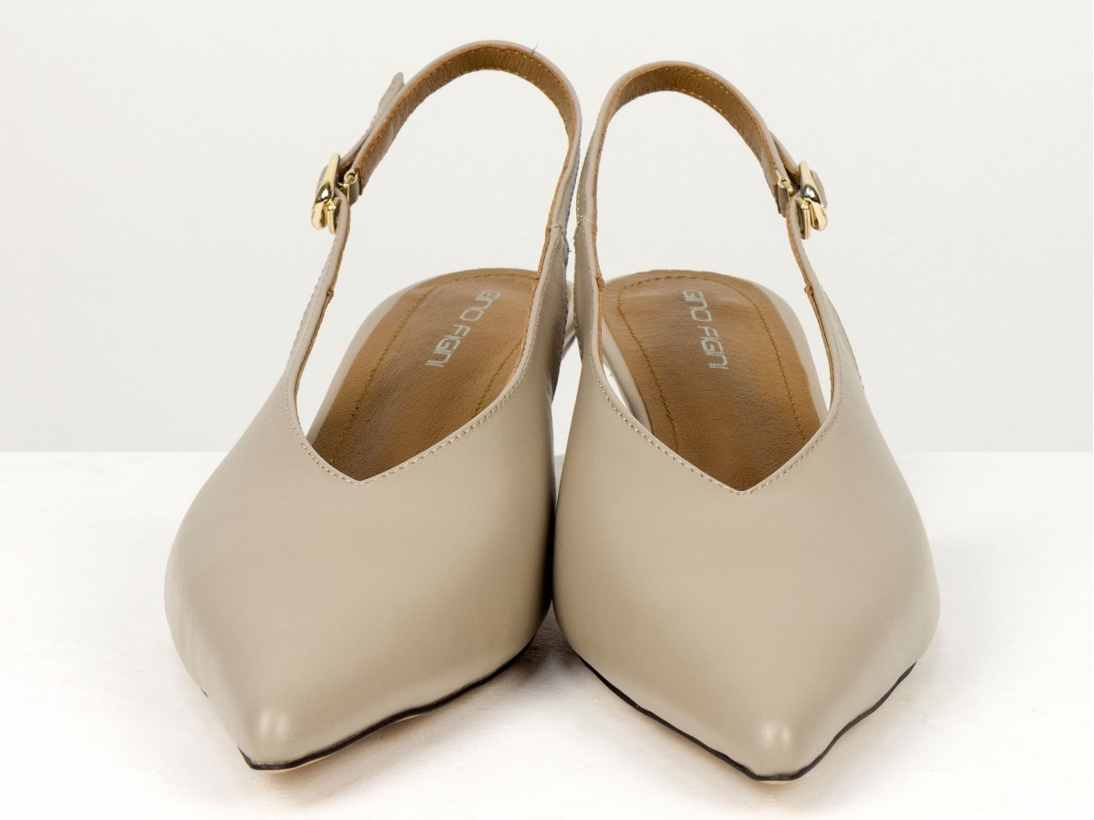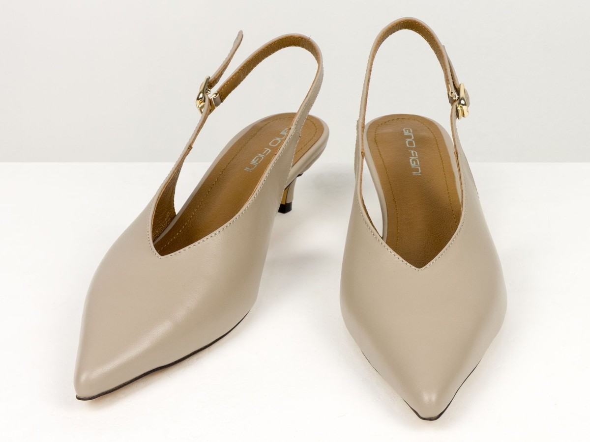 Елегантні слінгбеки туфлі у бежевому відтінку - ідеальний баланс мінімалізму та жіночності. Витончений гострий носок візуально подовжує ногу, а акуратний каблук середньої висоти забезпечує комфорт протягом усього дня.