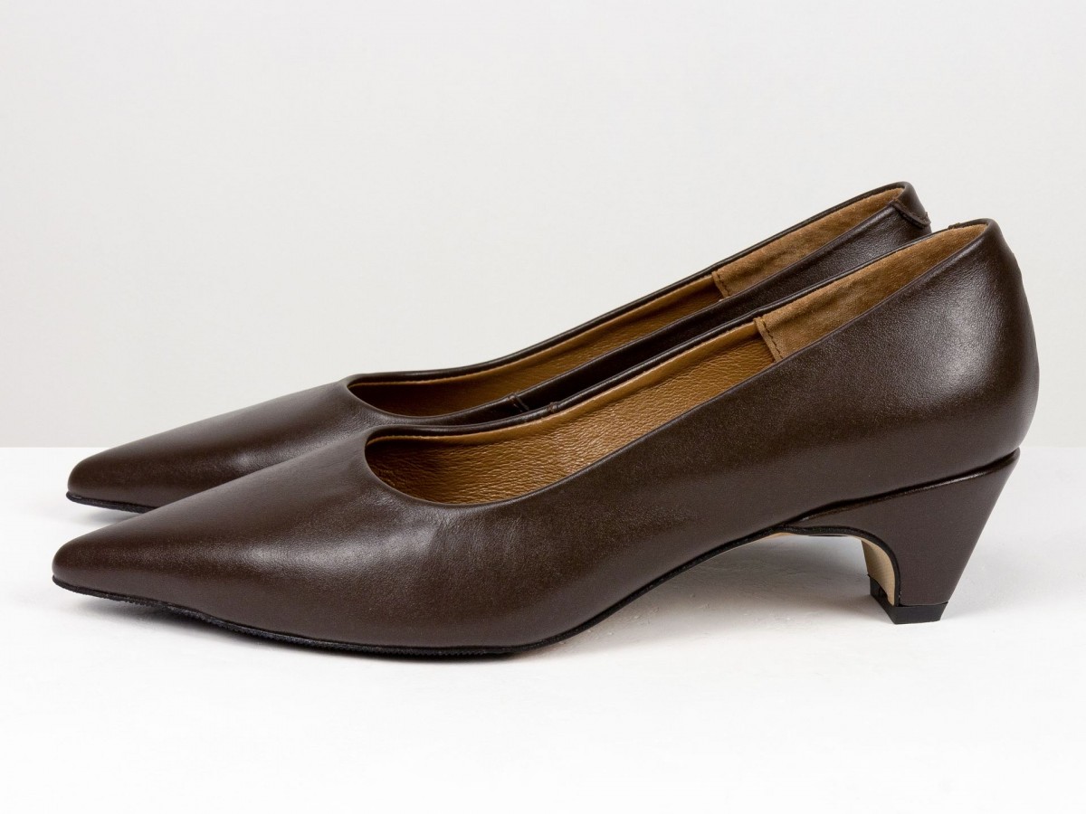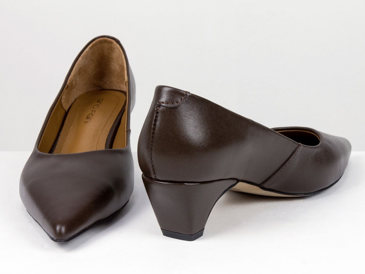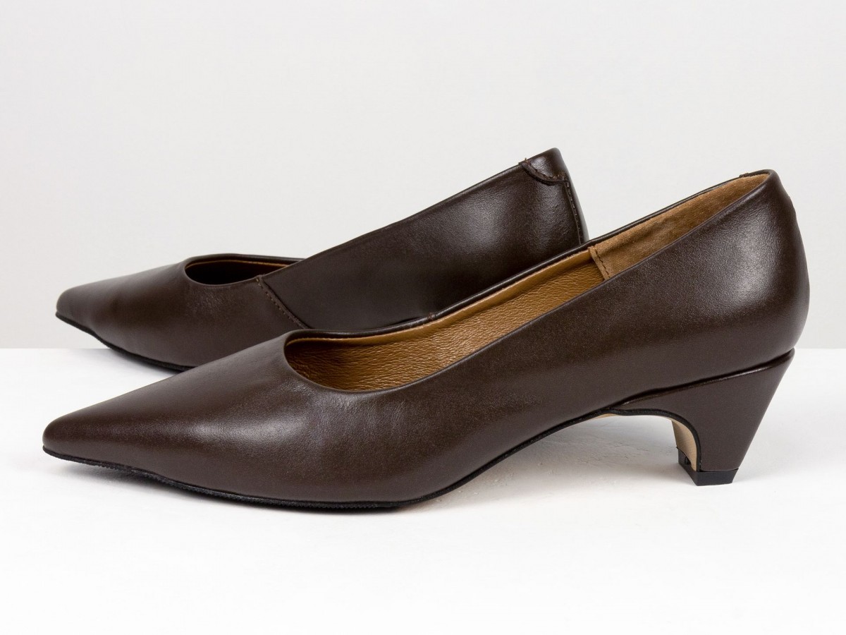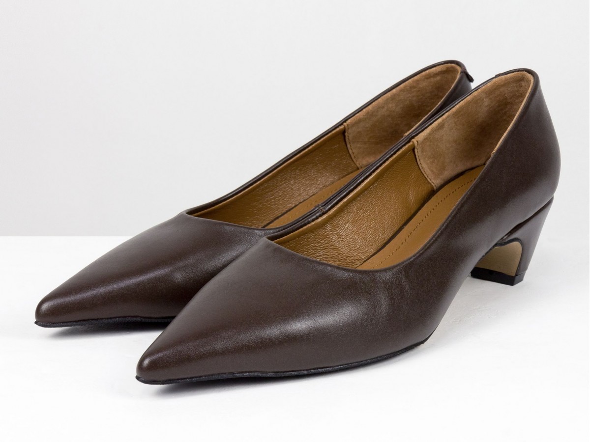 Стильные женские лодочки из натуральной кожи в благородном коричневом оттенке. Элегантный заостренный носок придает изящество, а невысокий каблук-чарочка обеспечивает комфорт при ходьбе. Идеальный выбор для работы, деловых встреч или вечерних выходов. Сочетают в себе классический дизайн и удобство на каждый день.