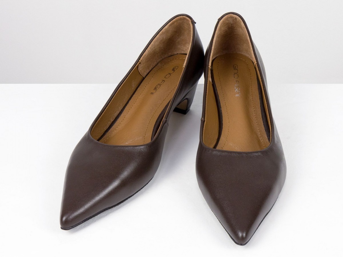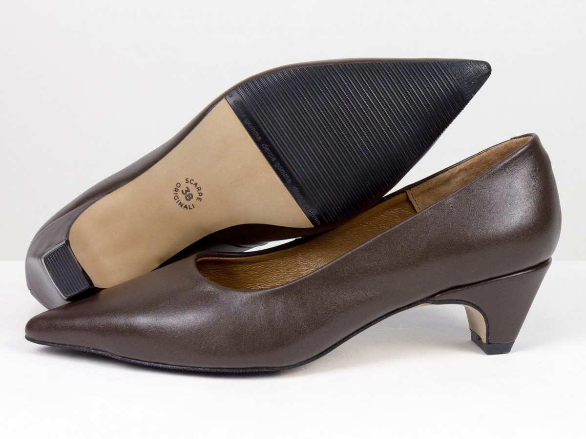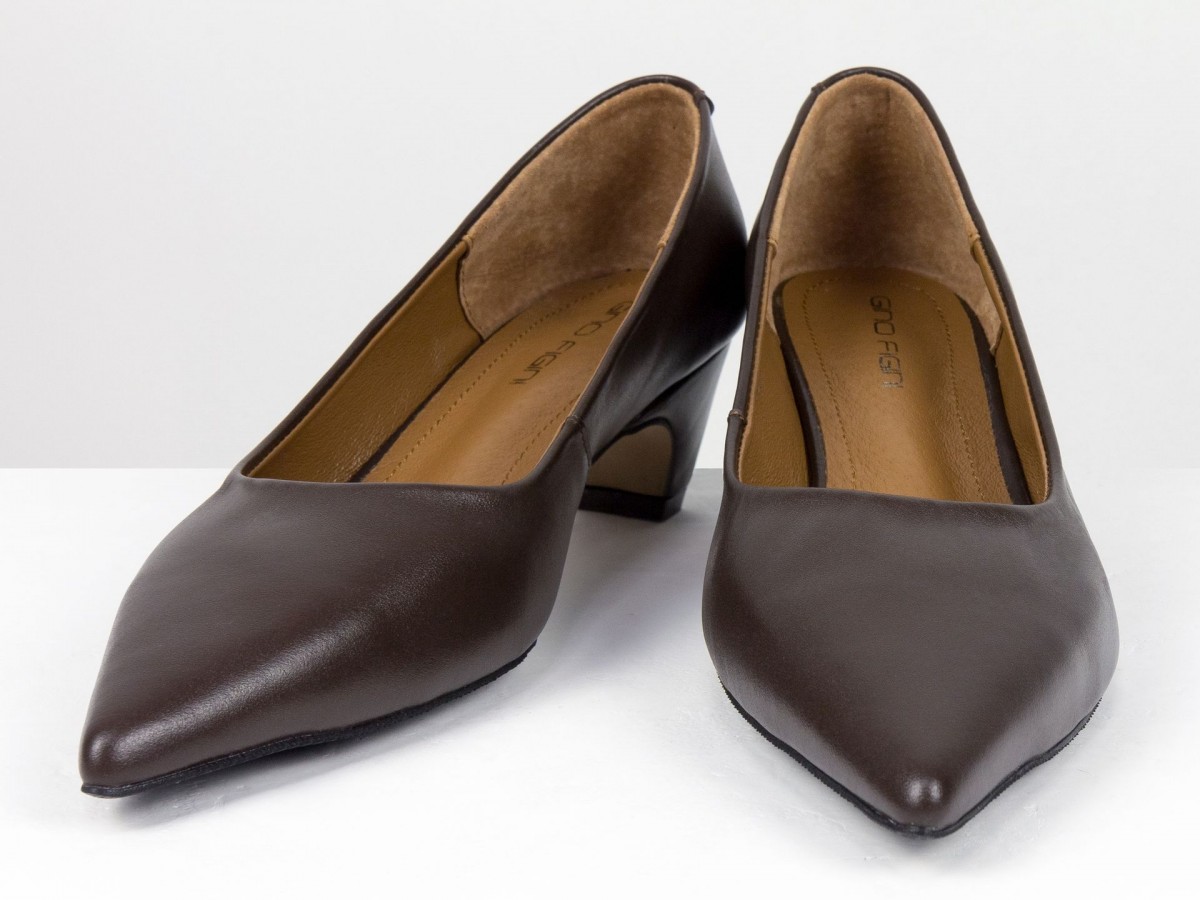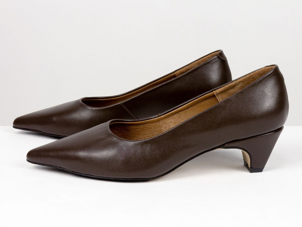 Стильные женские лодочки из натуральной кожи в благородном коричневом оттенке. Элегантный заостренный носок придает изящество, а невысокий каблук-чарочка обеспечивает комфорт при ходьбе. Идеальный выбор для работы, деловых встреч или вечерних выходов. Сочетают в себе классический дизайн и удобство на каждый день.
