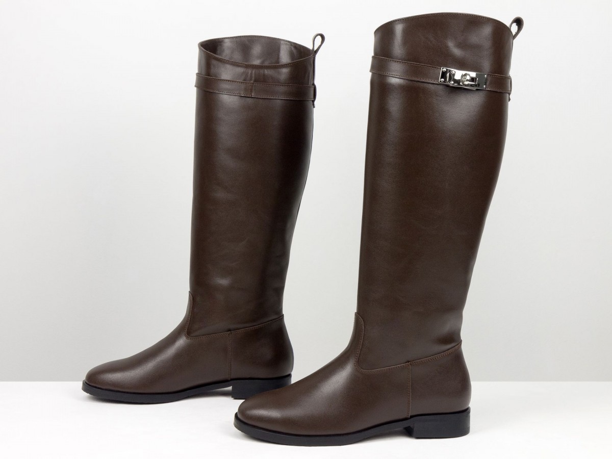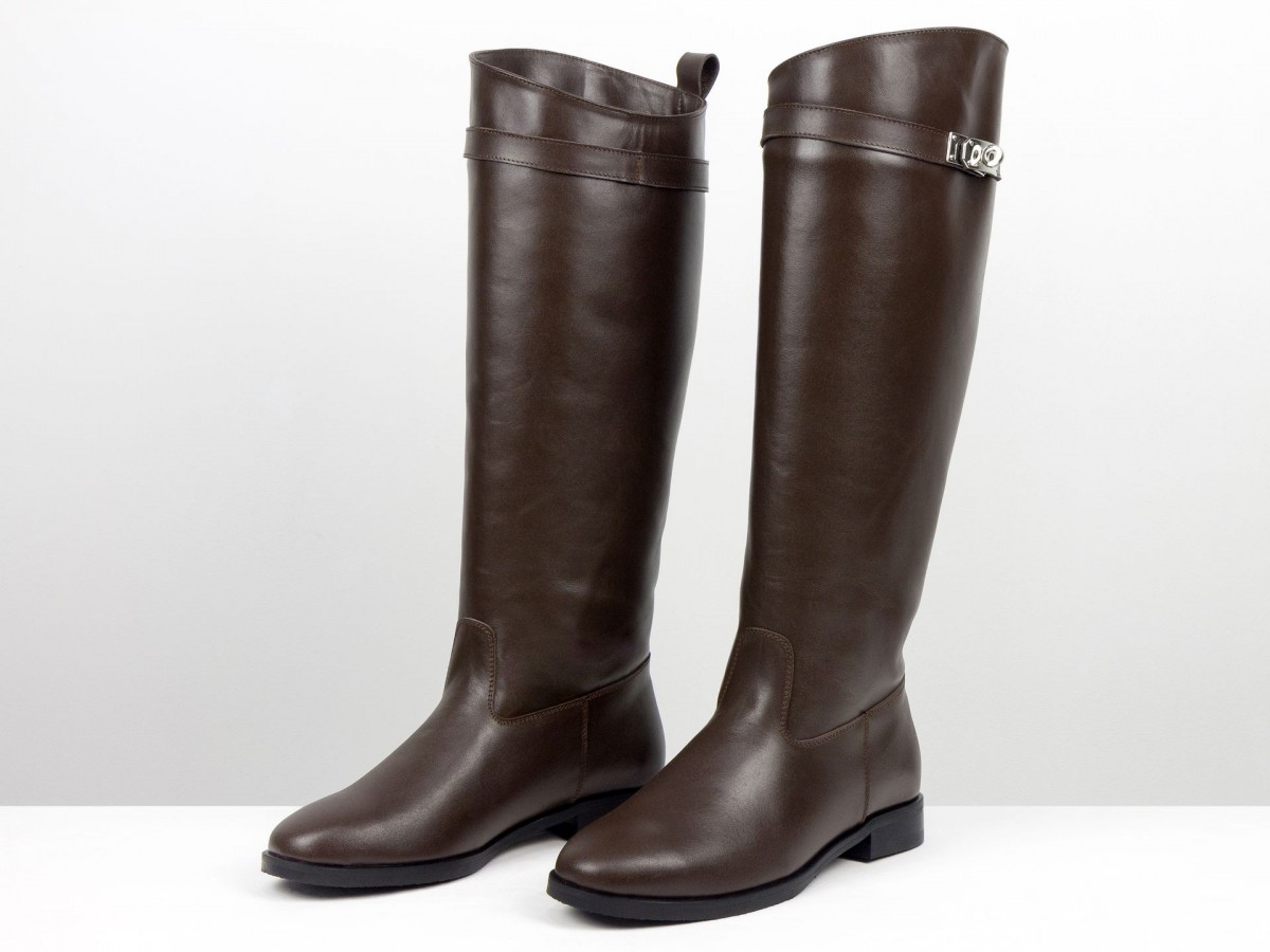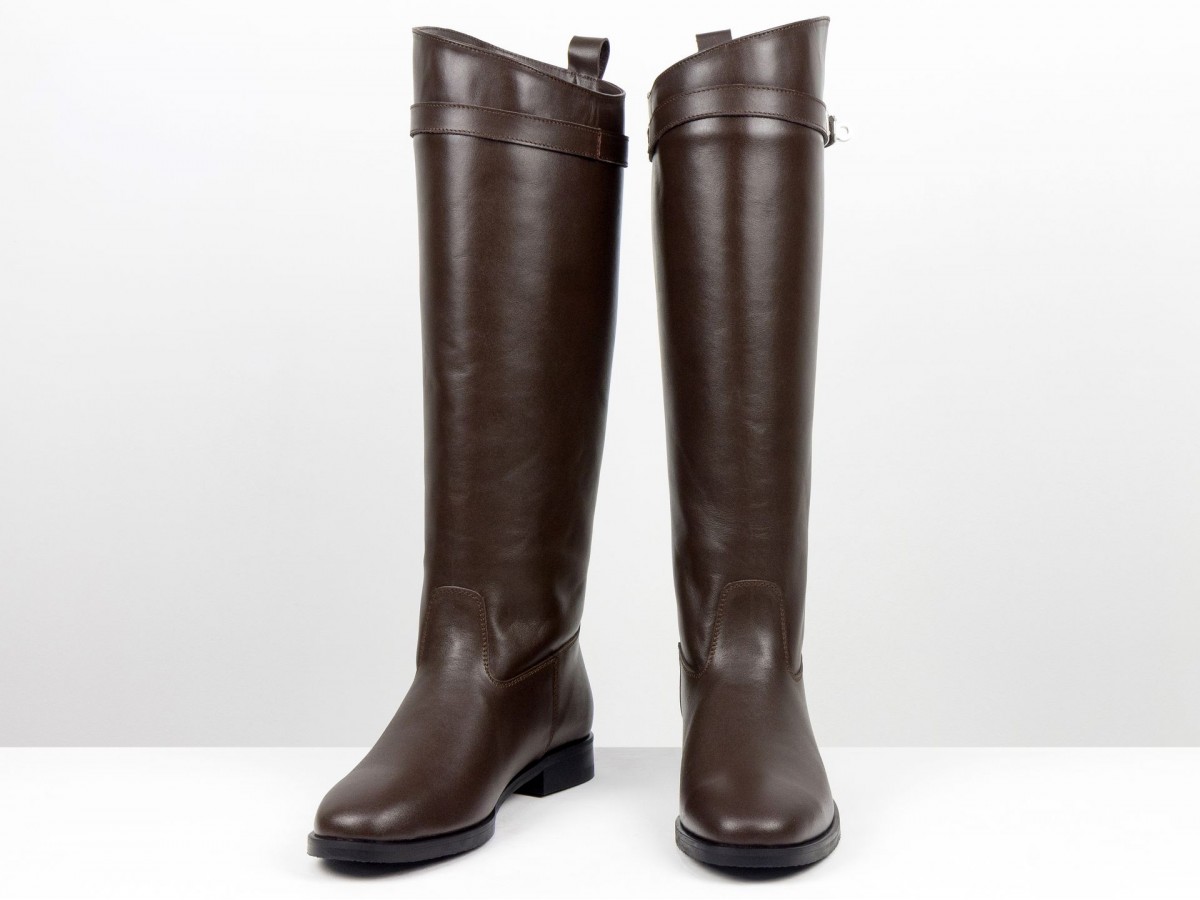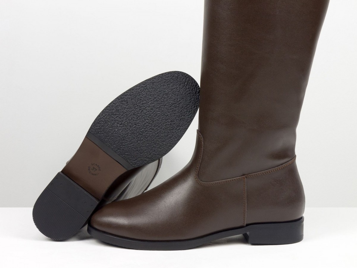 Низкий широкий каблук делает сапоги практичными для ежедневного использования, а универсальный коричневый цвет прекрасно сочетается как с платьями, так и с верхней одеждой.