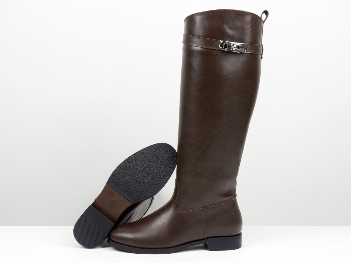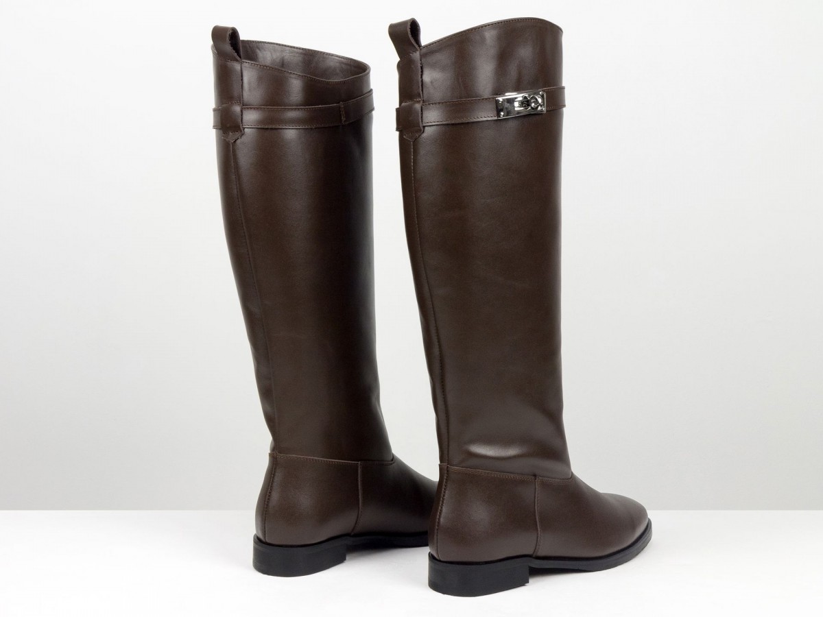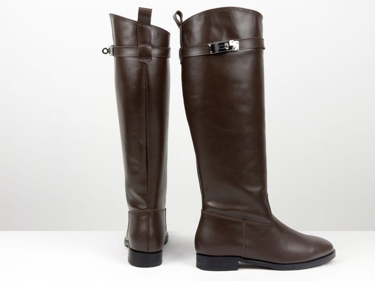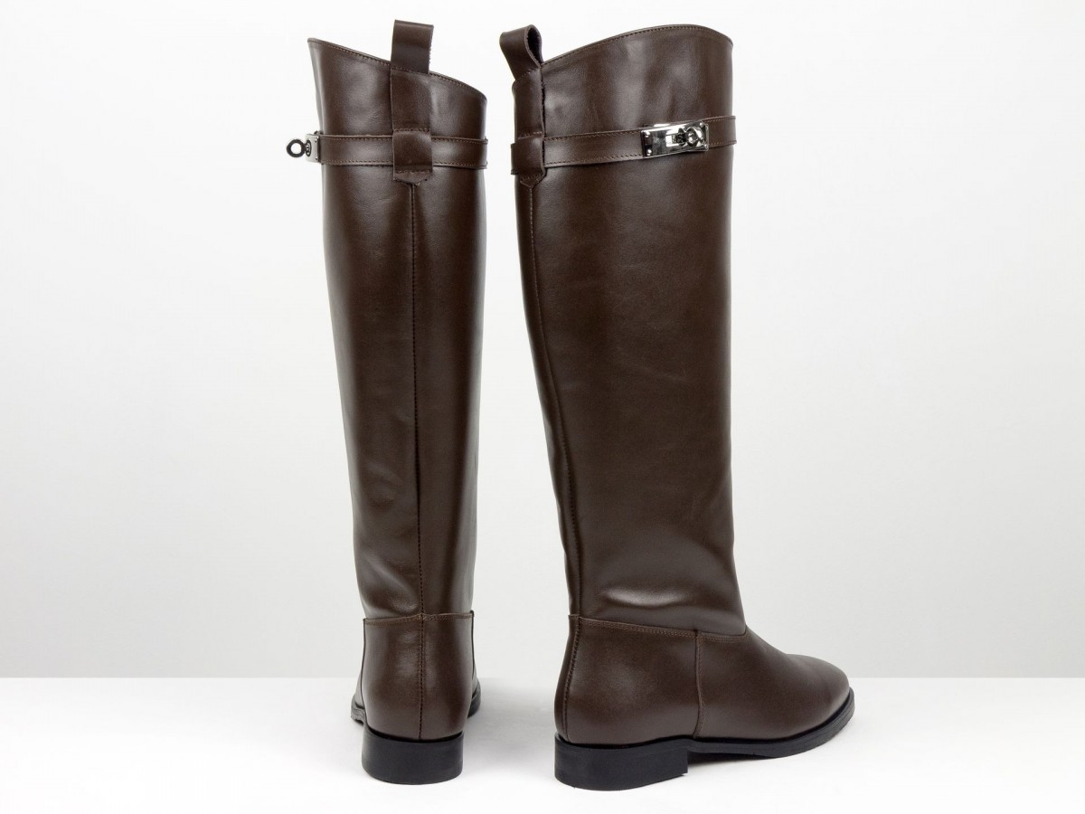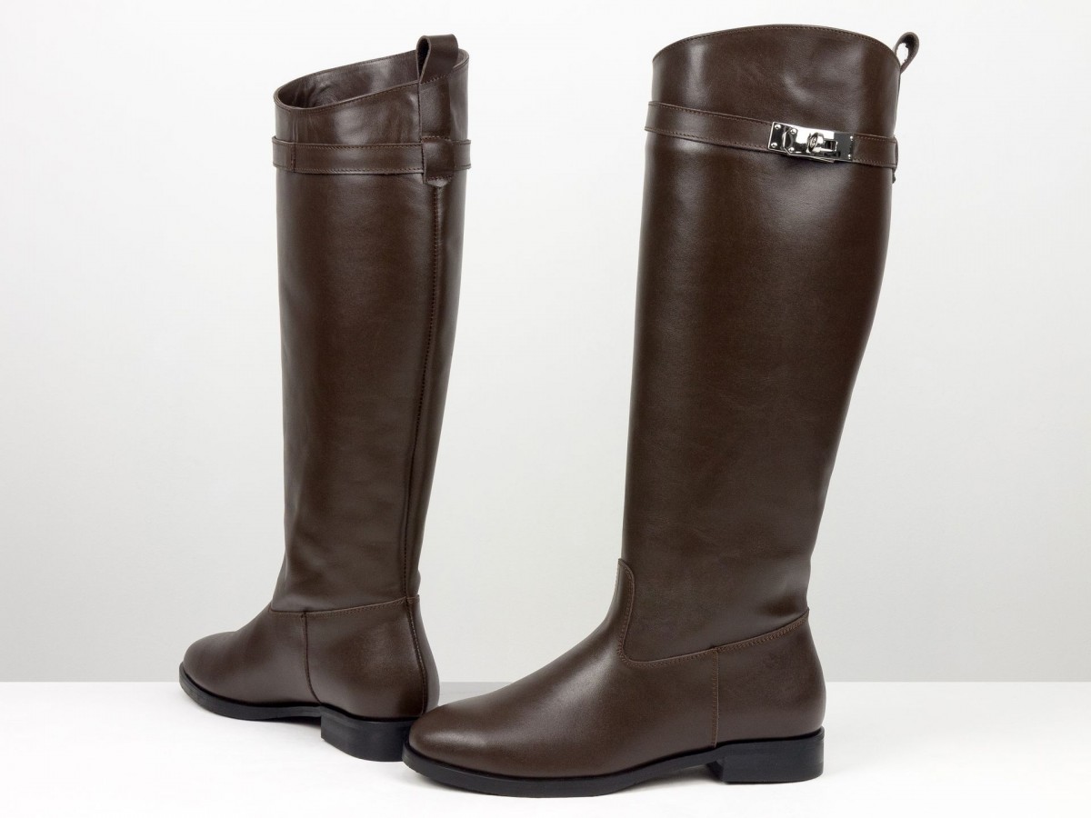 Низкий широкий каблук делает сапоги практичными для ежедневного использования, а универсальный коричневый цвет прекрасно сочетается как с платьями, так и с верхней одеждой.