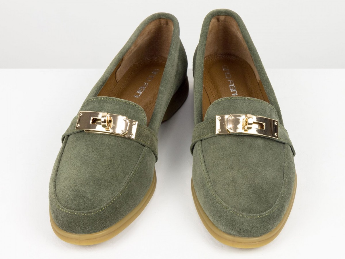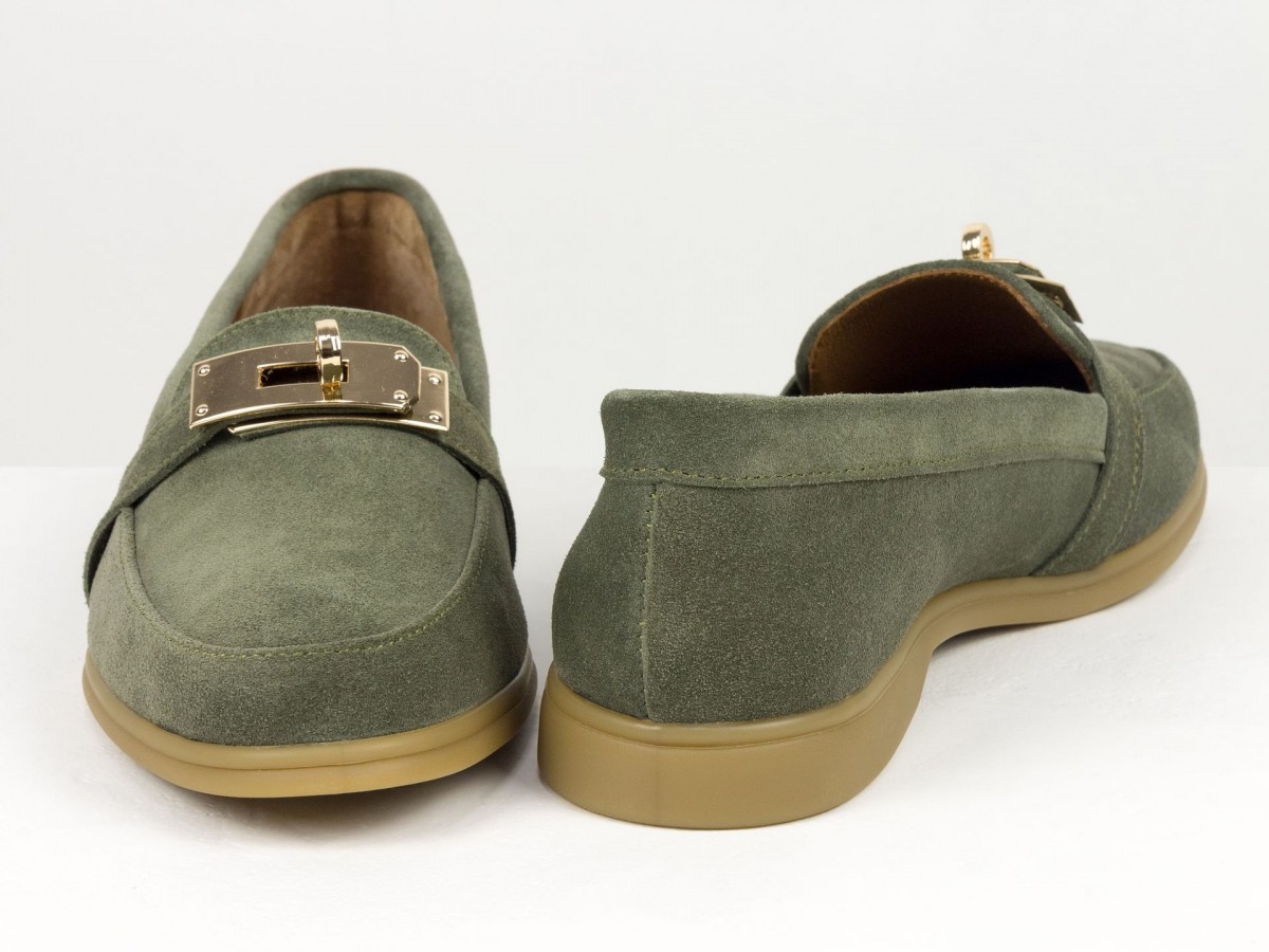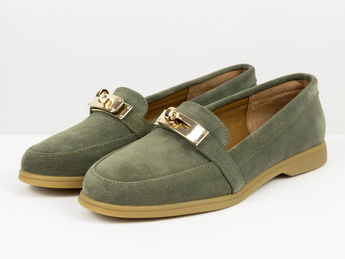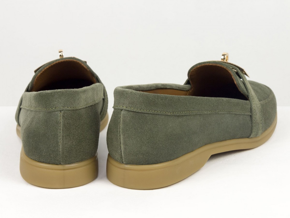 Вишукані жіночі лофери, виконані з натуральної замші, ідеально підкреслять ваш щоденний стиль. Стильний металевий декор додає елегантності, а м’яка підкладка гарантує комфорт протягом усього дня. Ідеальний вибір як для ділових образів, так і для повсякденного стилю.
