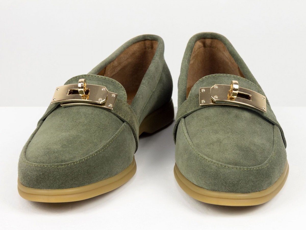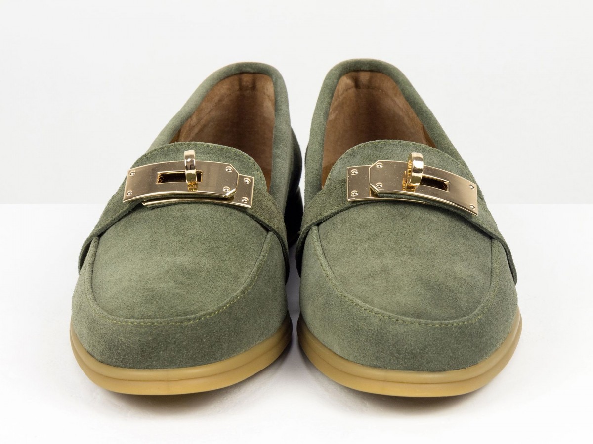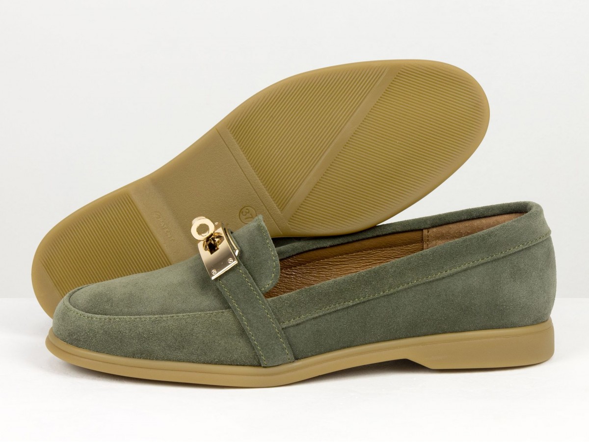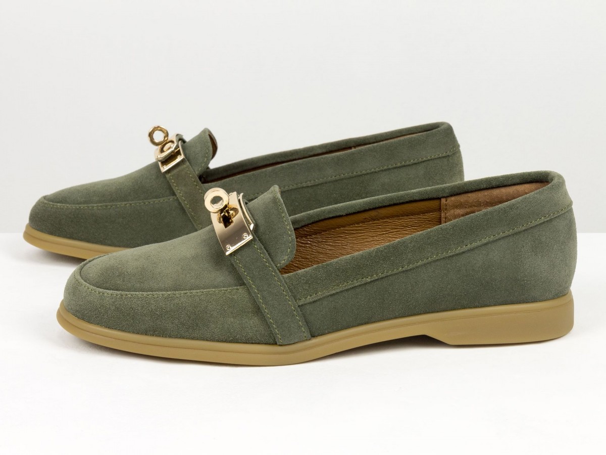 Вишукані жіночі лофери, виконані з натуральної замші, ідеально підкреслять ваш щоденний стиль. Стильний металевий декор додає елегантності, а м’яка підкладка гарантує комфорт протягом усього дня. Ідеальний вибір як для ділових образів, так і для повсякденного стилю.