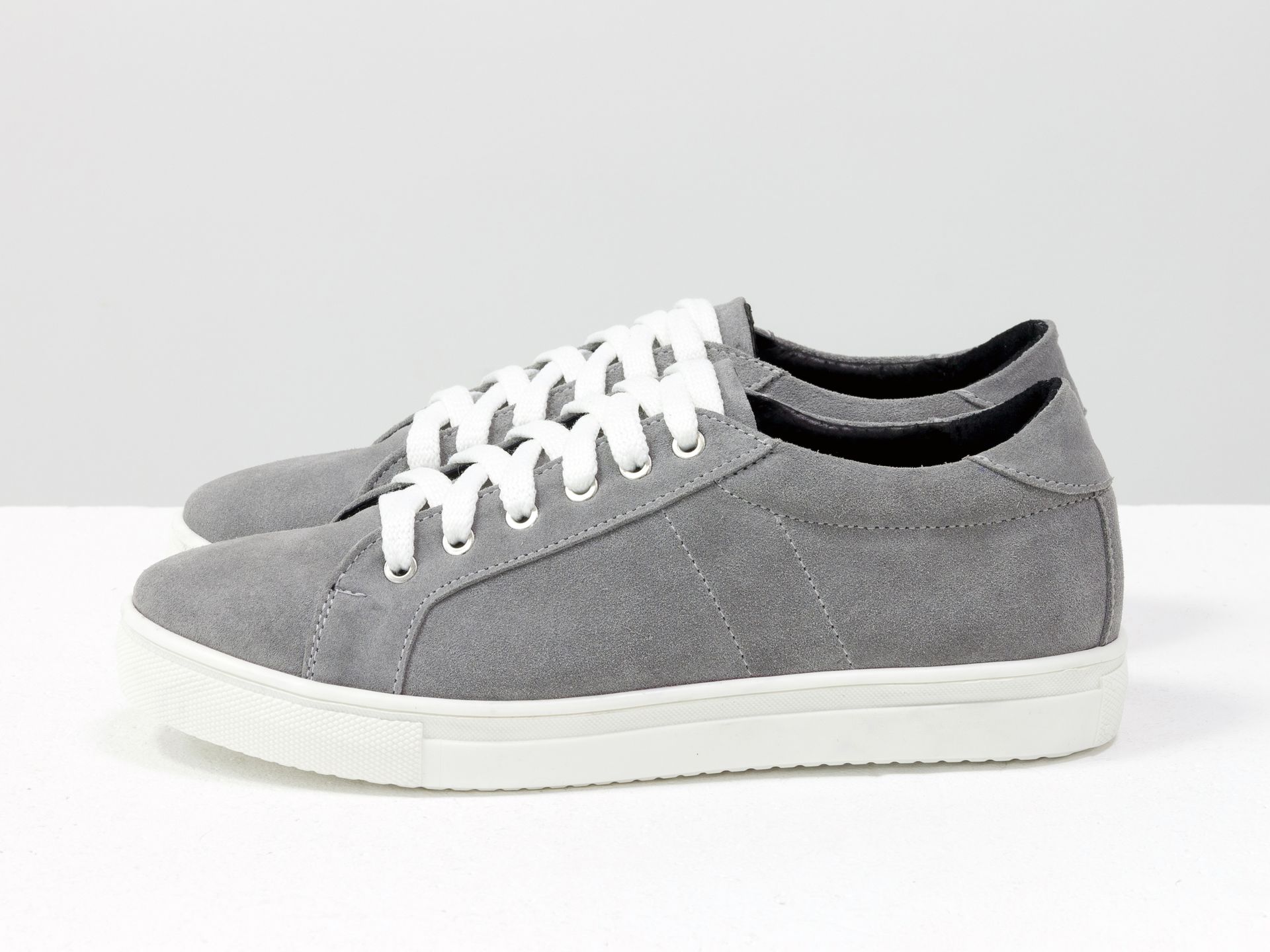 Женские кеды из натуральной замши серого цвета на белой подошве Gino Figini