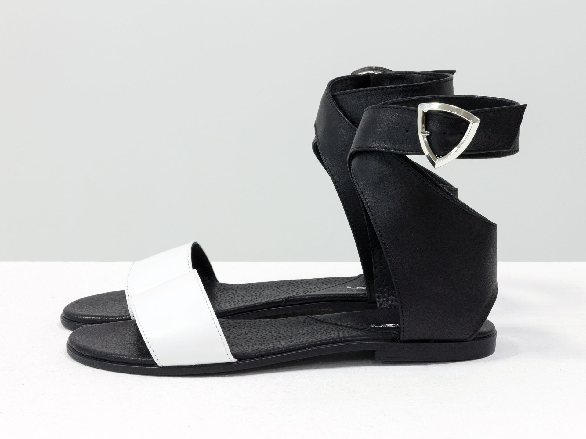 Босоножки на низком ходу из черной и белой кожи Gino Figini