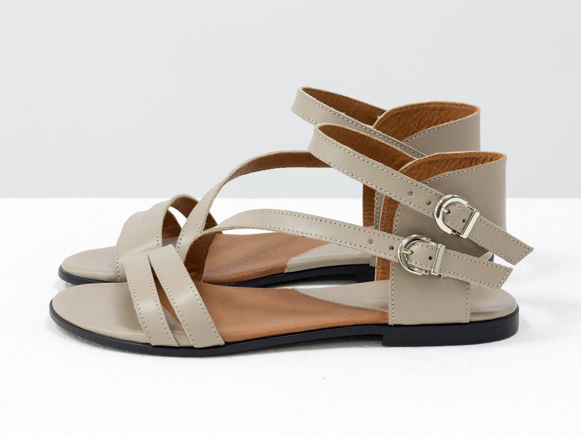 Босоножки бежевые из натуральной кожи на легкой подошве черного цвета Gino Figini