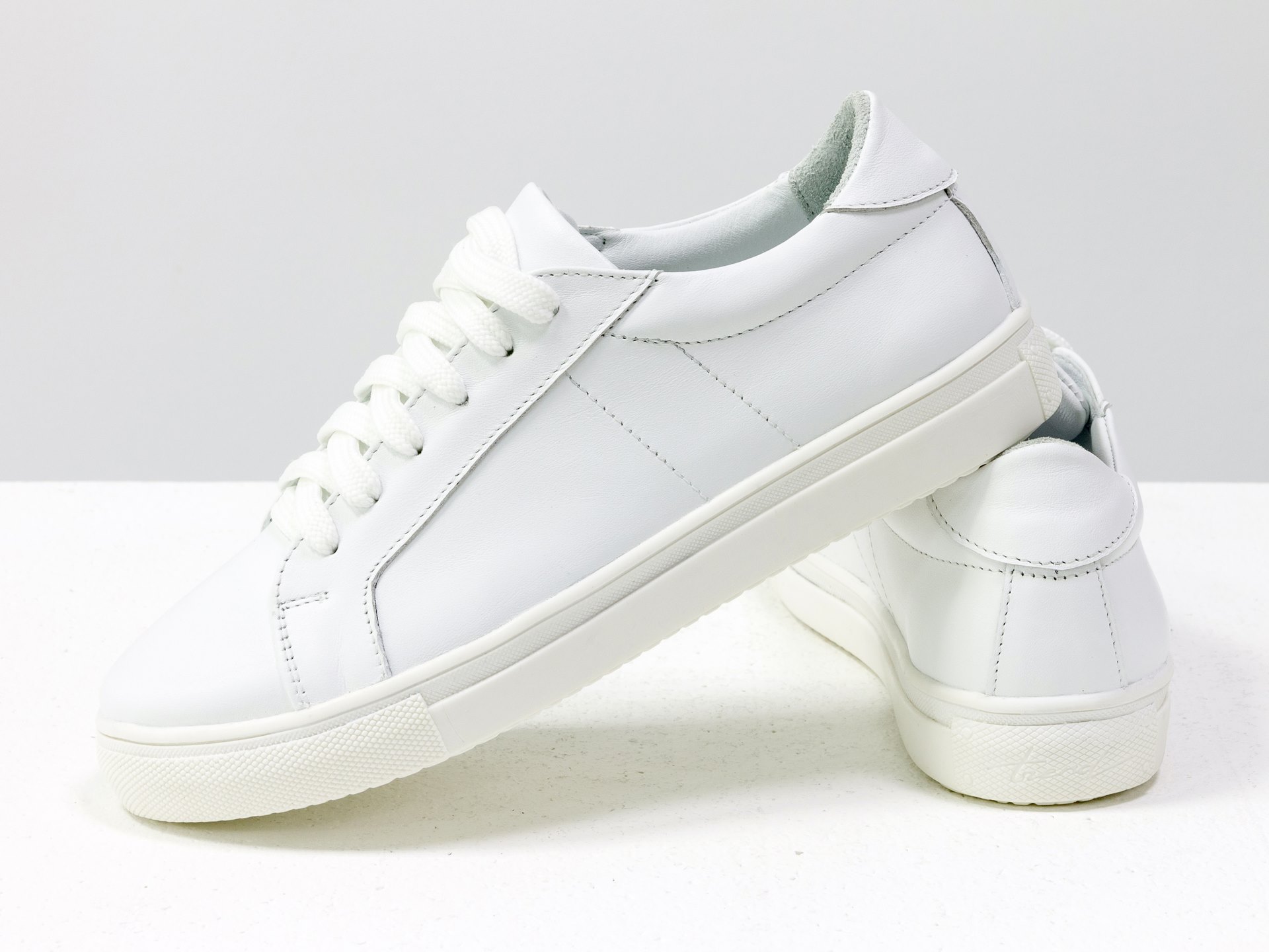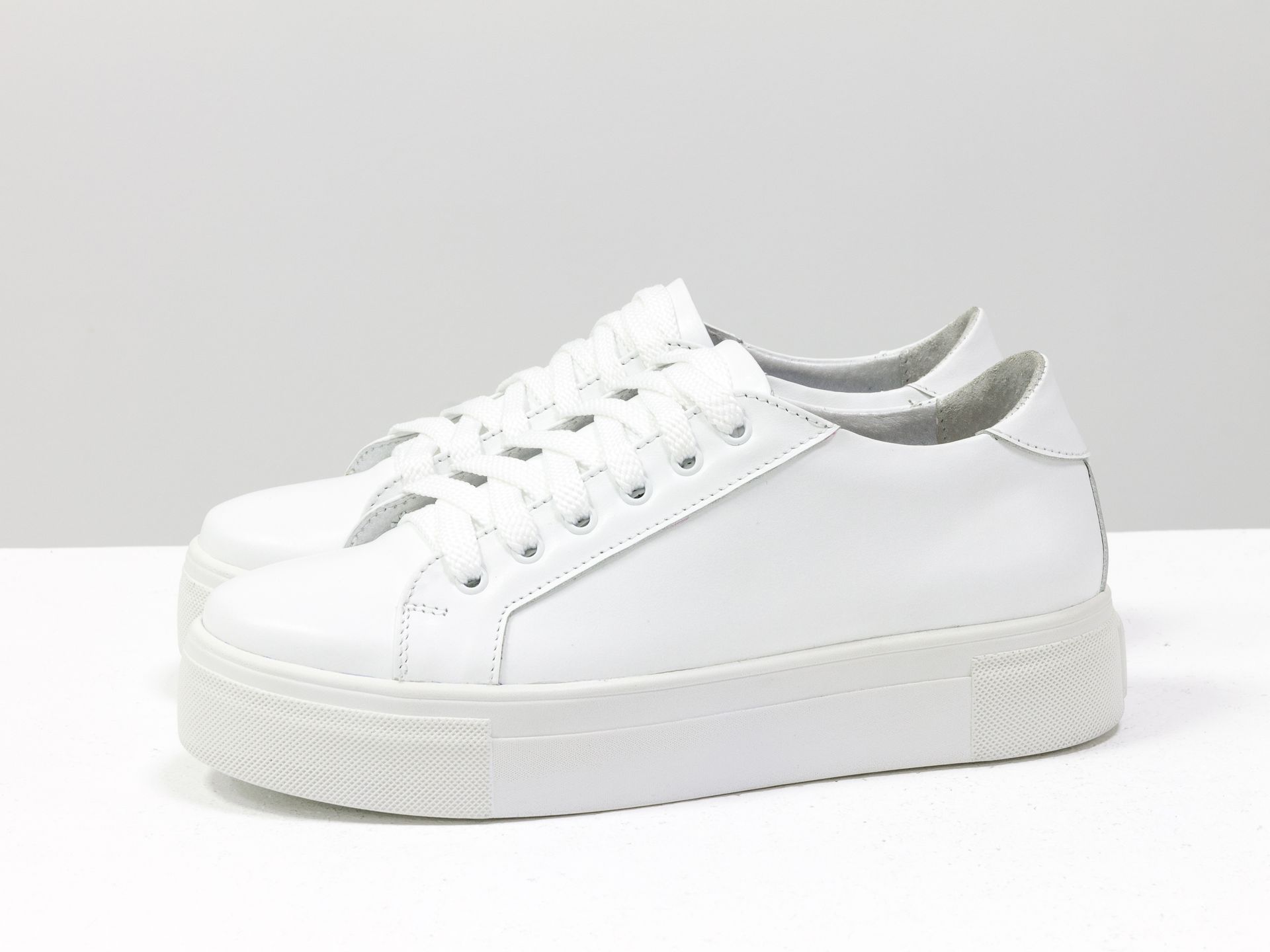 Женские белые кеды из кожи на белой прорезиненной подошве Gino Figini