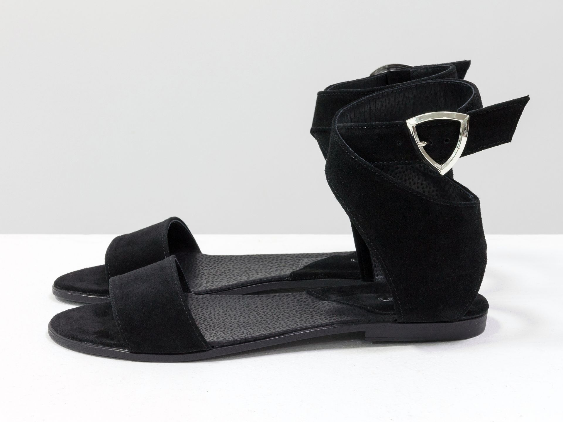 Босоножки на низком ходу из натуральной черной замши Gino Figini