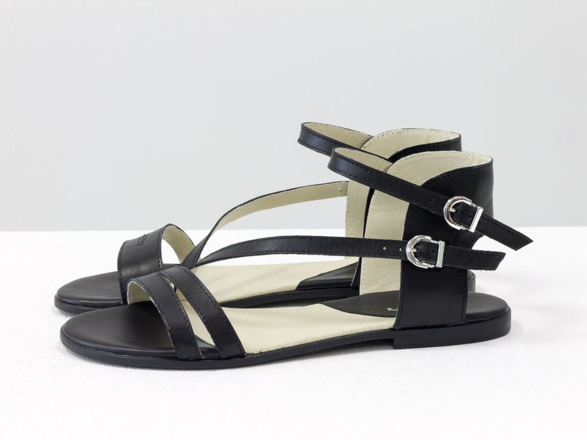 Босоножки на низком ходу из натуральной черной кожи Gino Figini