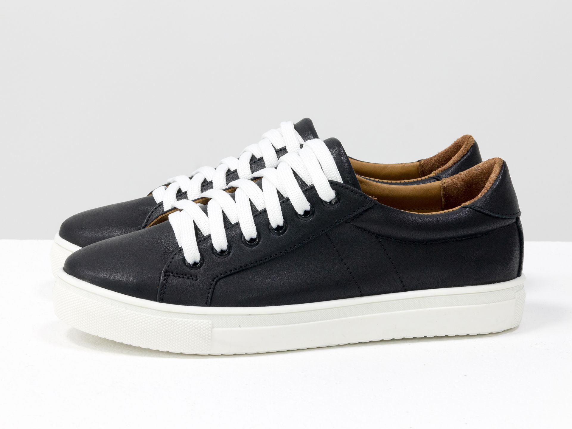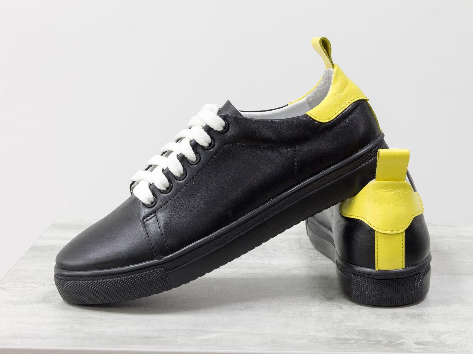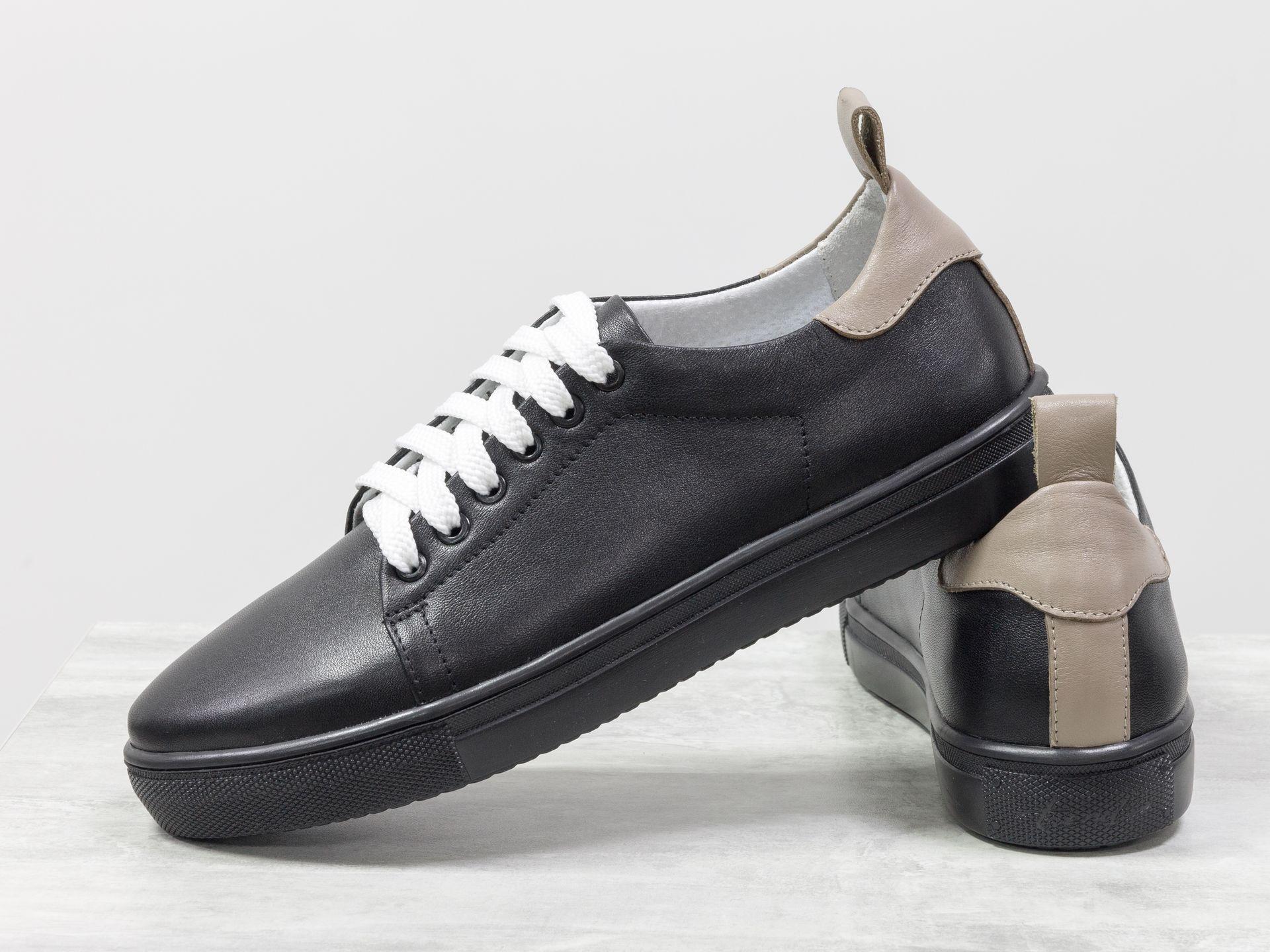 Женские черные кожаные кеды из натуральной кожи, сезон весна-лето Gino Figini