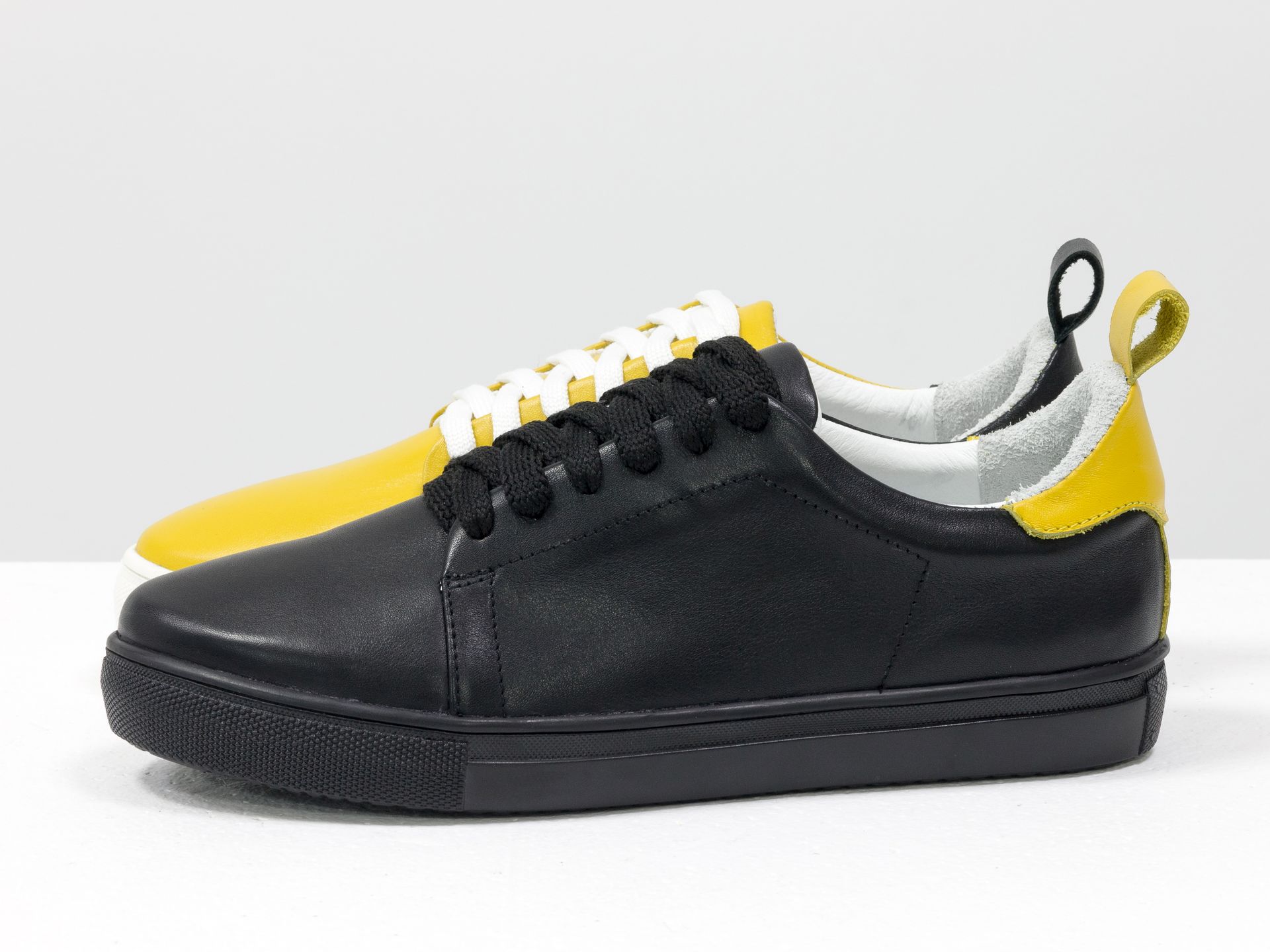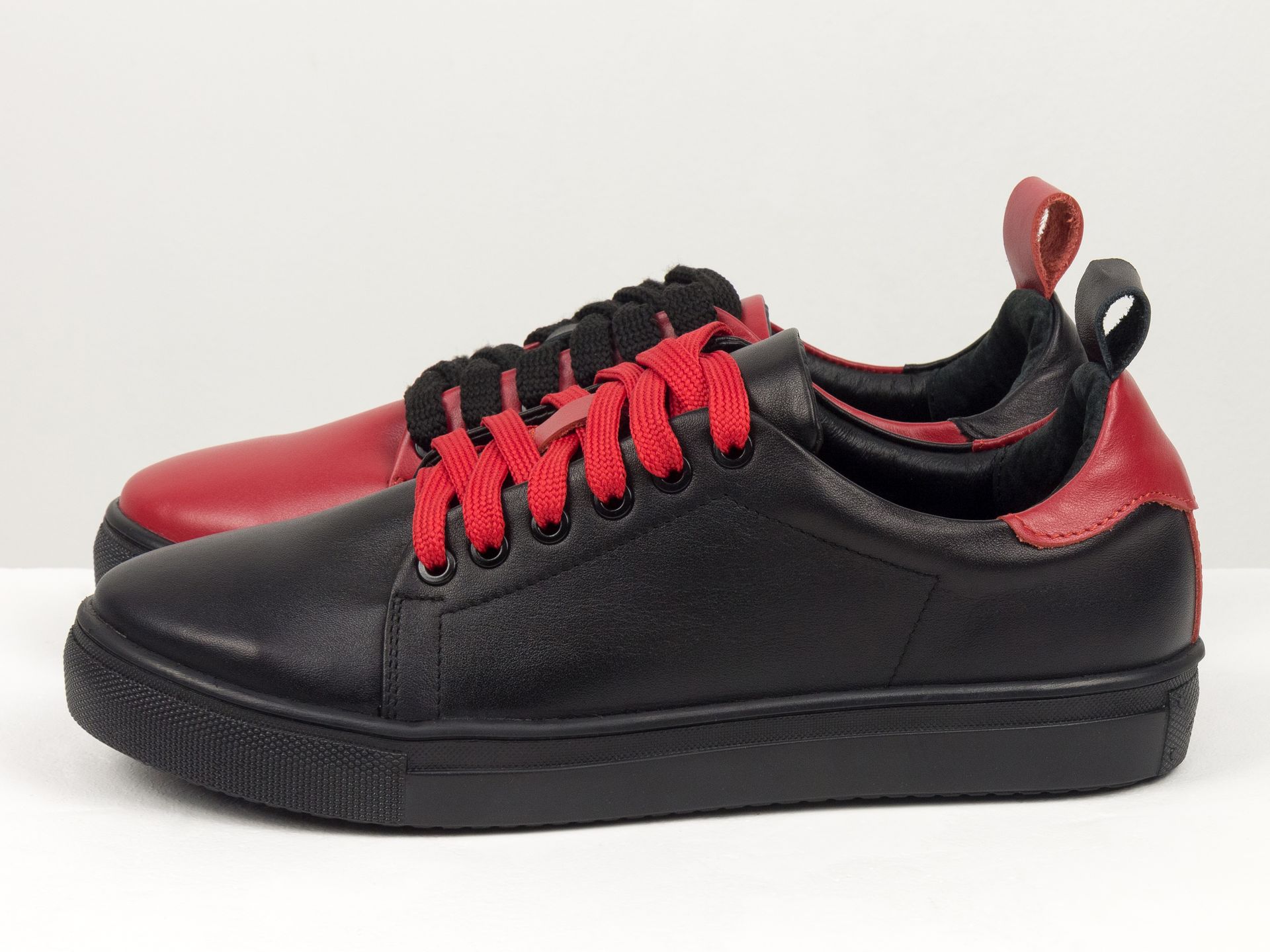 Эксклюзивные женские двухцветные кеды из кожи черного и красного цвета на легкой подошве Gino Figini