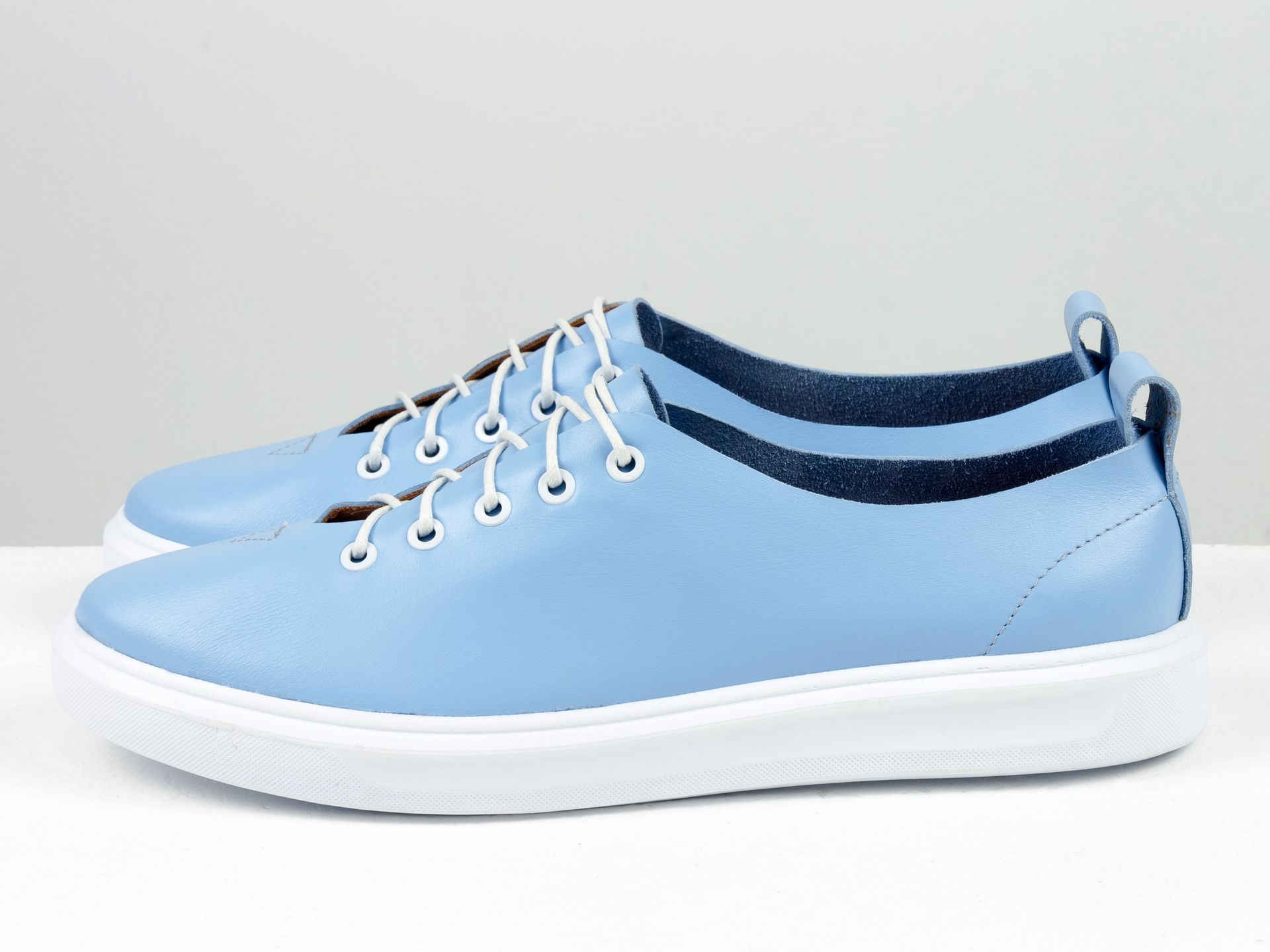 Летние женские кеды из натуральной кожи голубого цвета Gino Figini