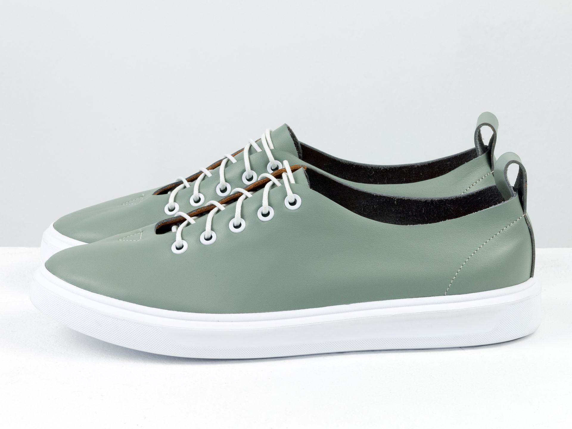 Летние женские кеды из натуральной кожи серо-голубого цвета Gino Figini
