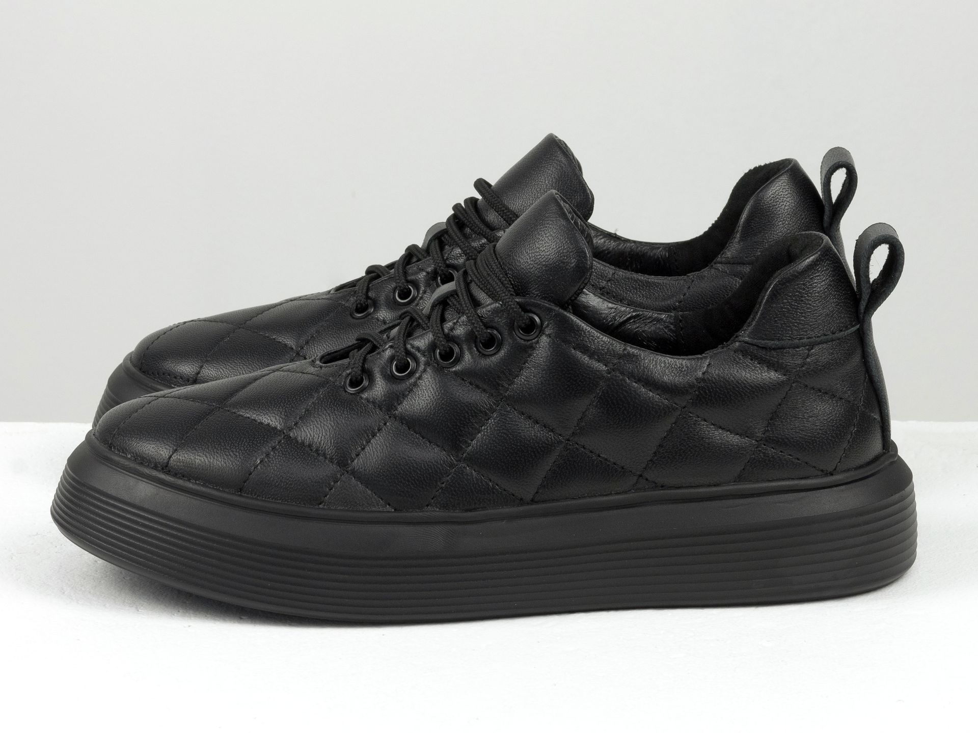 Женские стеганые кеды из натуральной кожи черного цвета на облегченной подошве Gino Figini