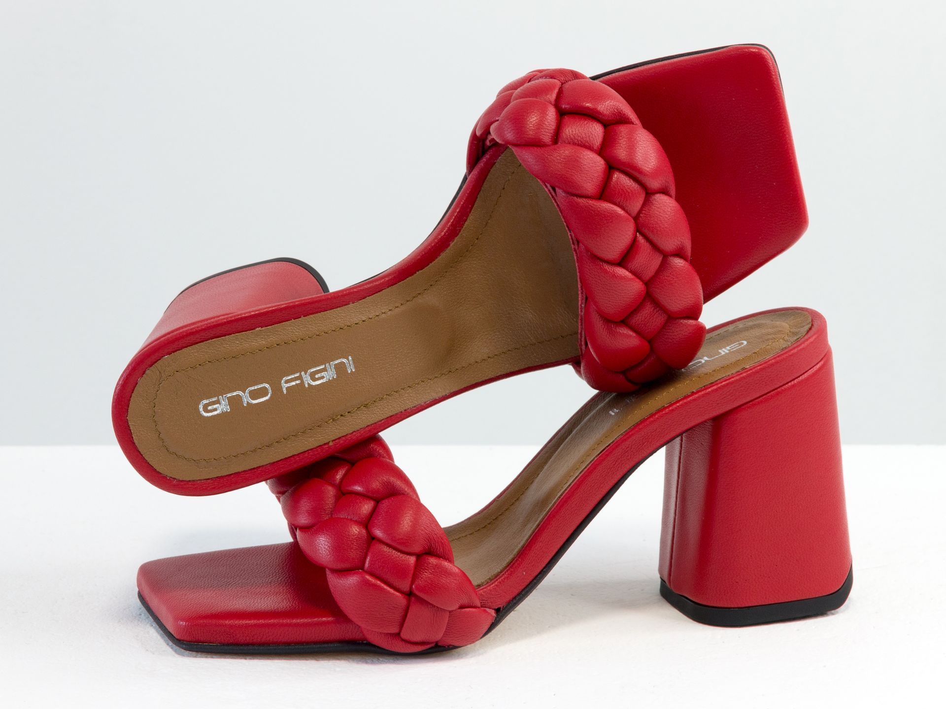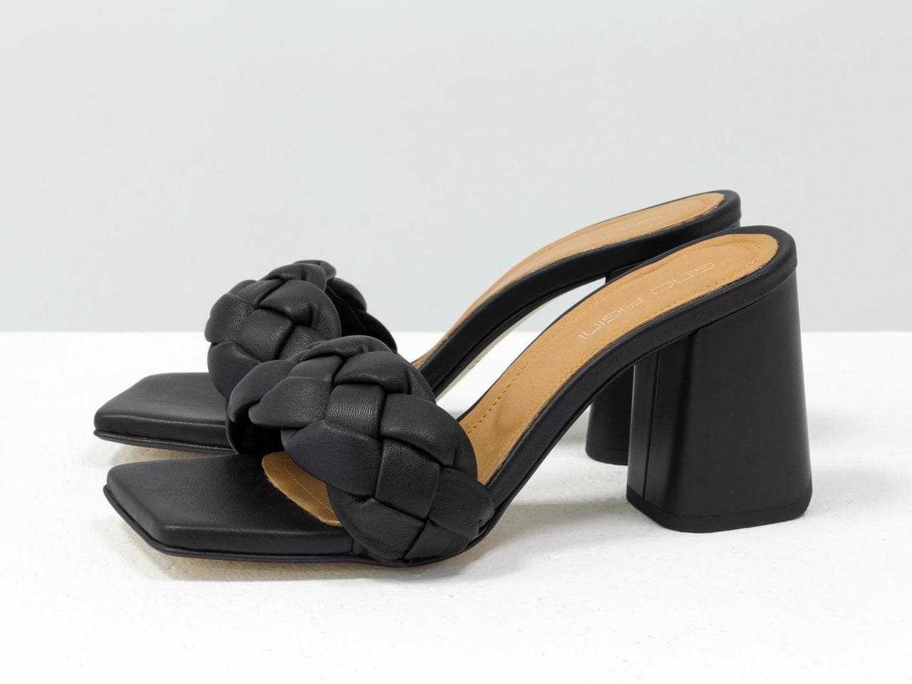 Дизайнерские шлепанцы "косички" на расклешенном каблуке из натуральной итальянской кожи черного цвета Gino Figini