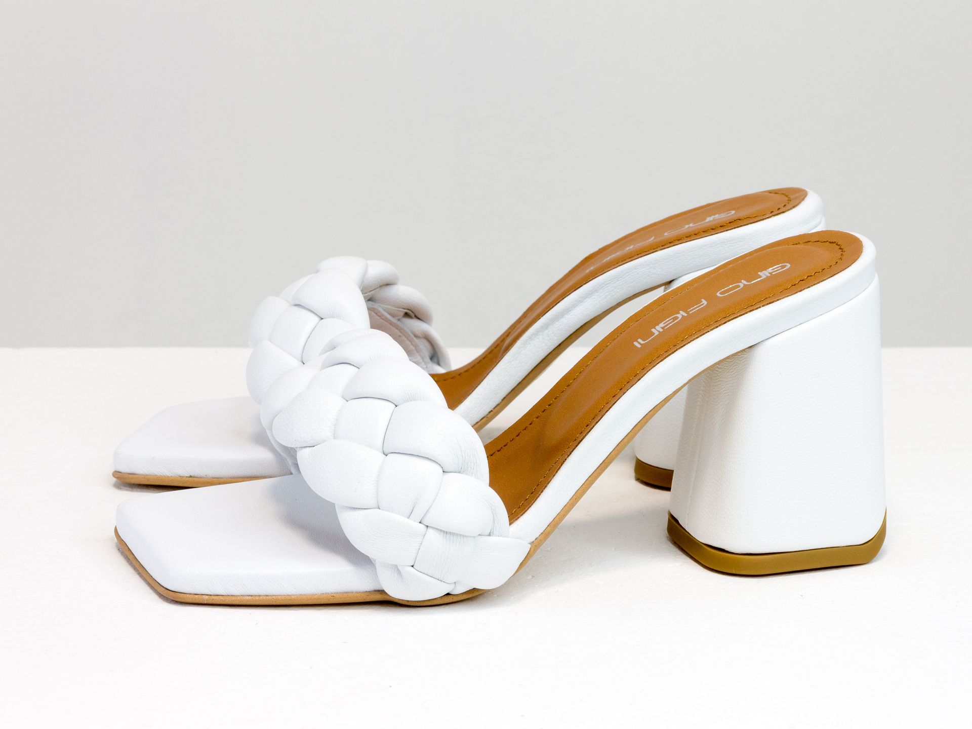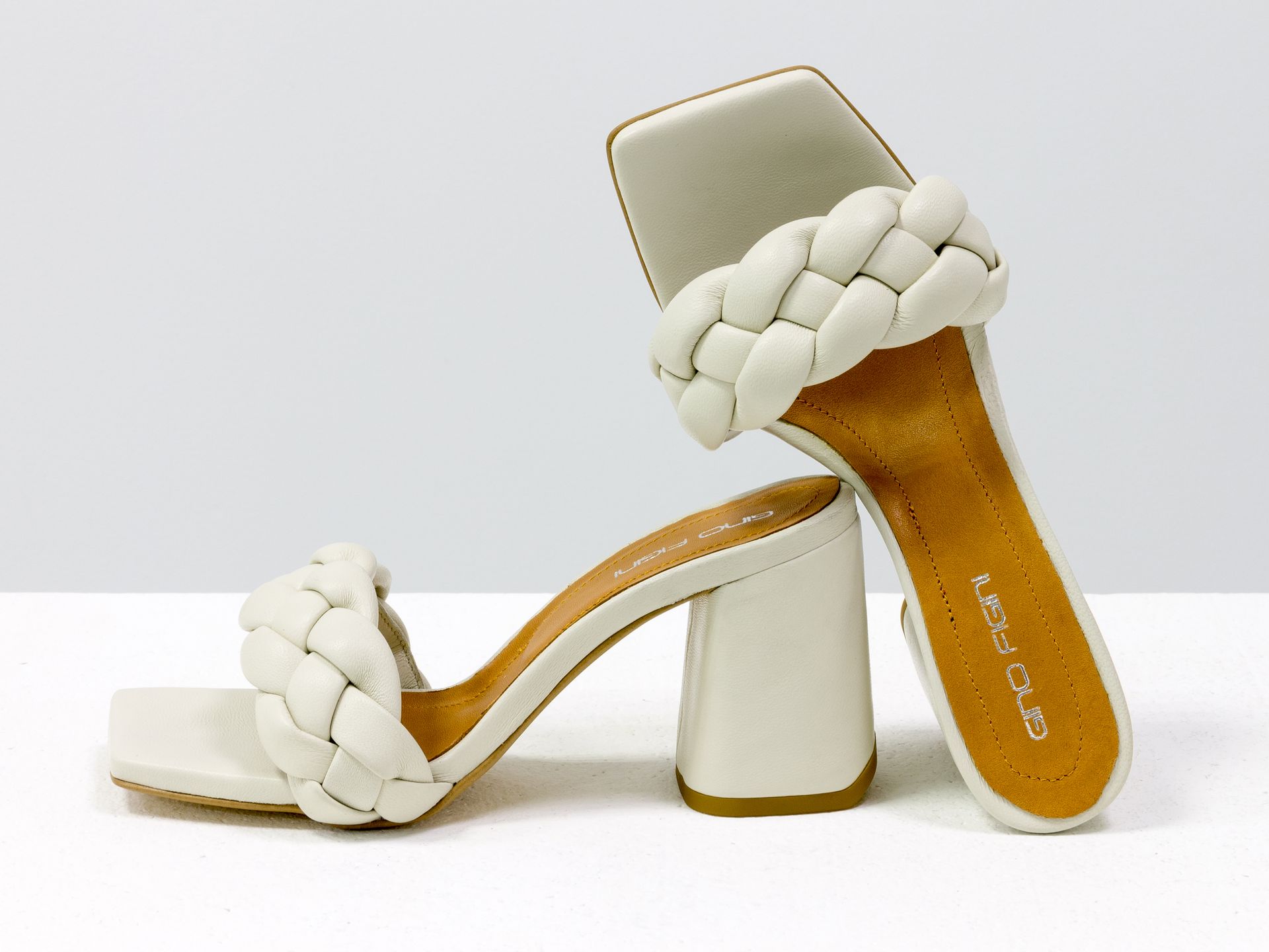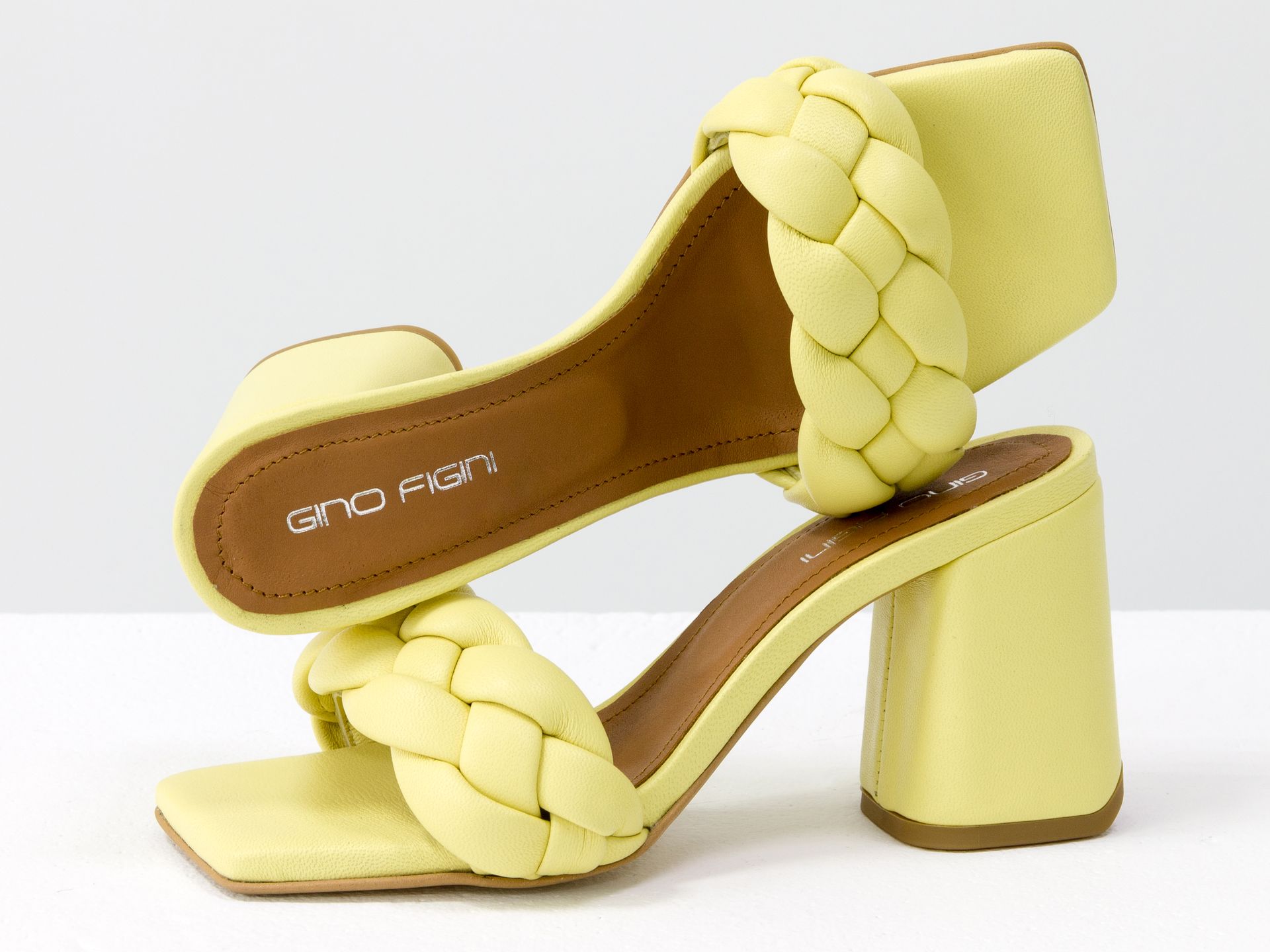 Дизайнерские шлепанцы "косички" на расклешенном каблуке из натуральной итальянской кожи желтого цвета Gino Figini