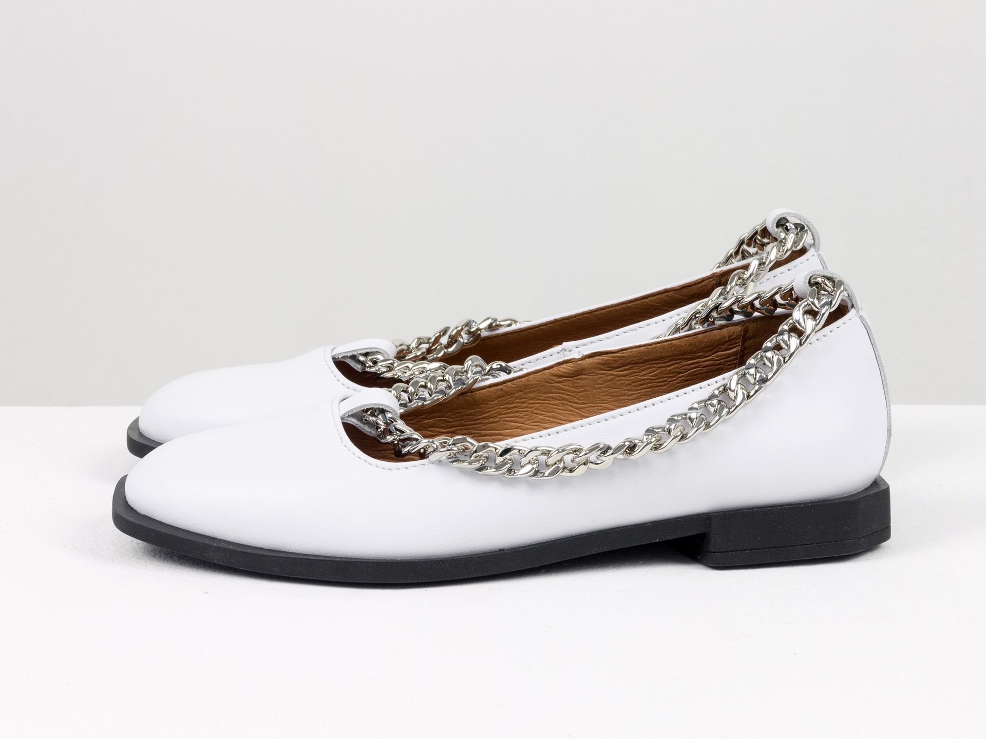 Женские белые туфли на низком ходу из натуральной кожи с серебряной цепочкой Gino Figini