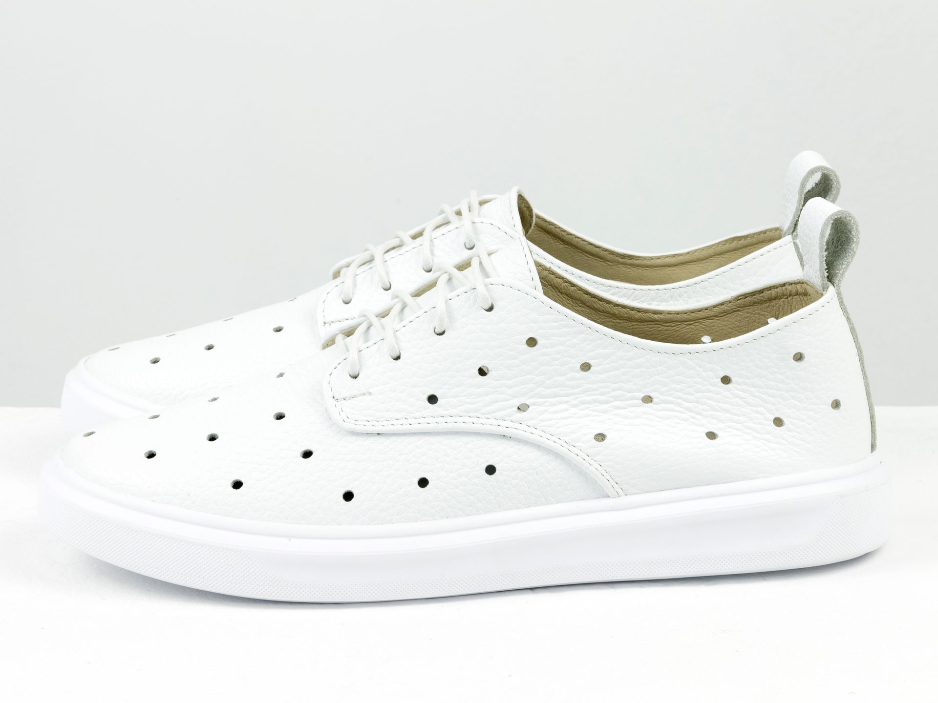 Женские туфли из натуральной кожи белого цвета с перфорацией Gino Figini