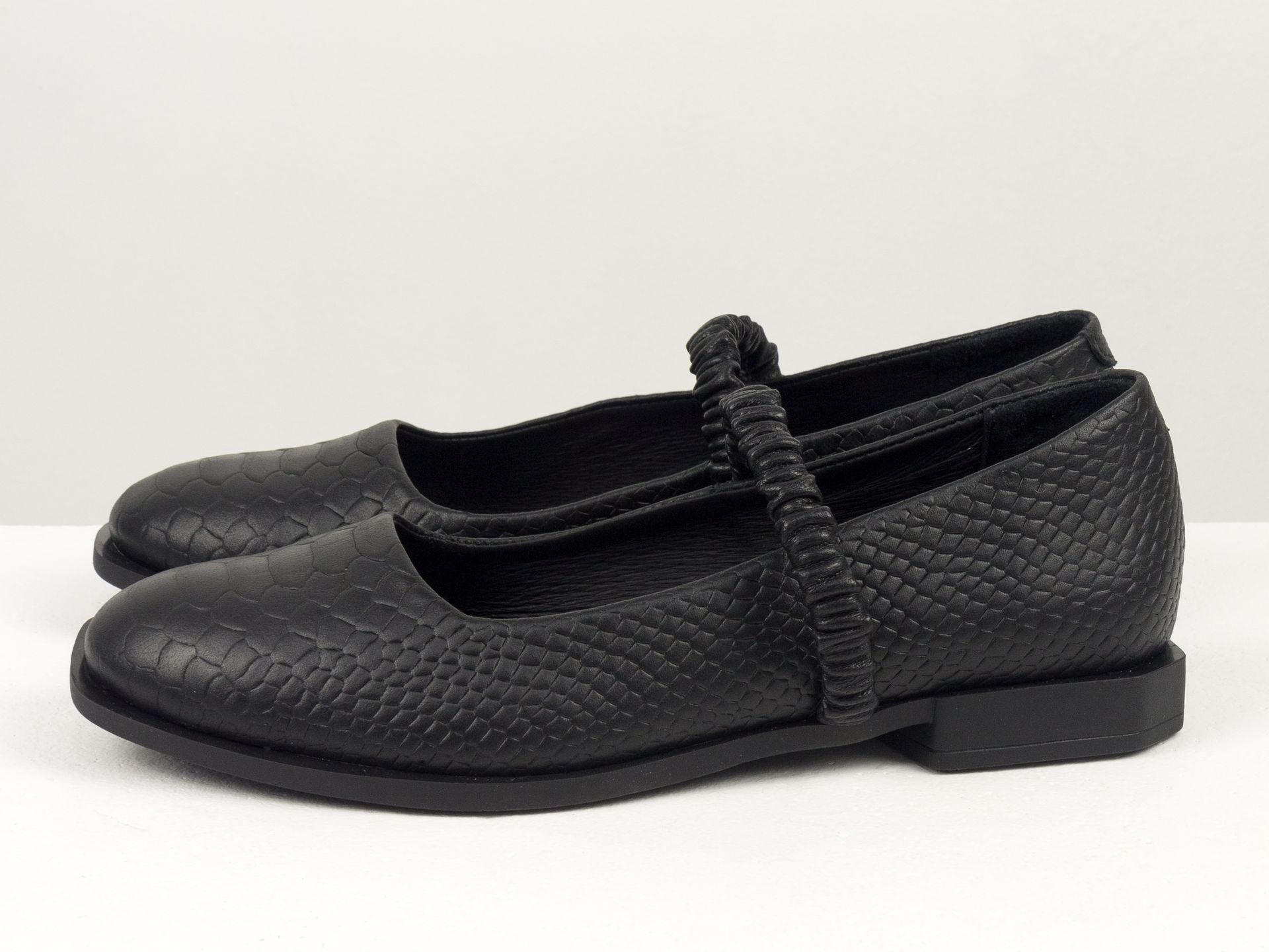 Женские черные туфли на низком каблуке из натуральной кожи с текстурой питон и резинками Gino Figini
