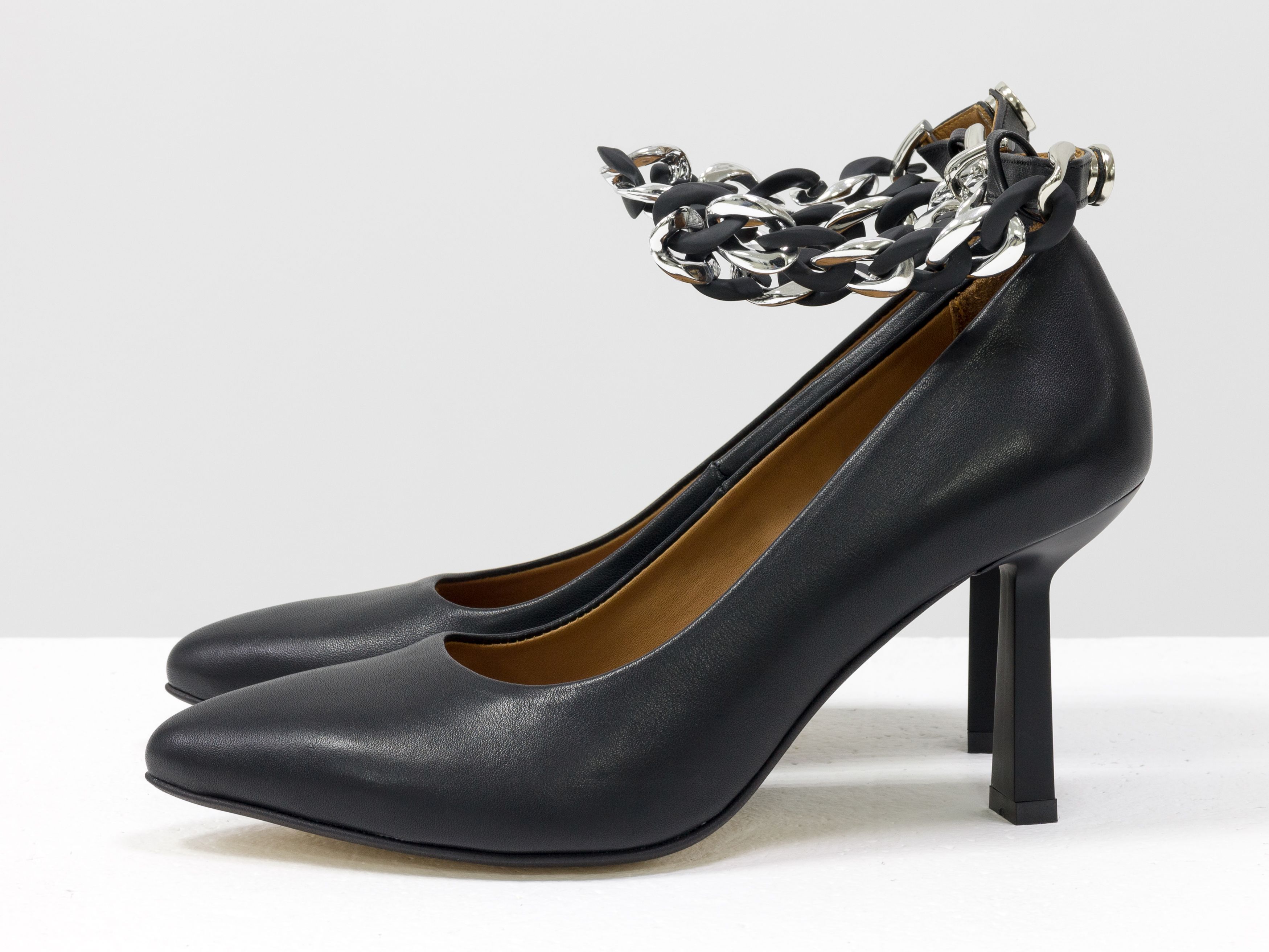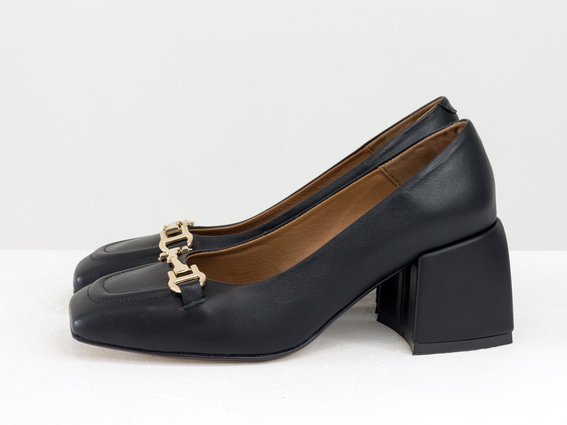 Черные туфли на невысоком каблуке из натуральной итальянской кожи с фурнитурой Gino Figini