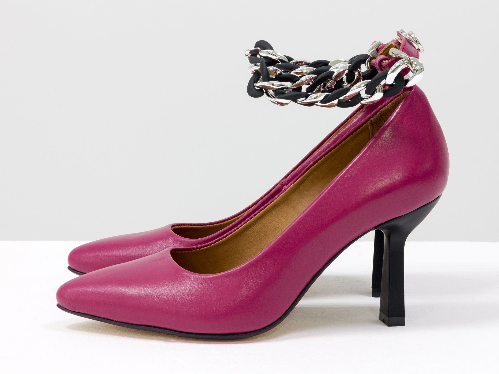 Дизайнерские туфли лодочки на каблуке из натуральной итальянской кожи цвета фуксия Gino Figini