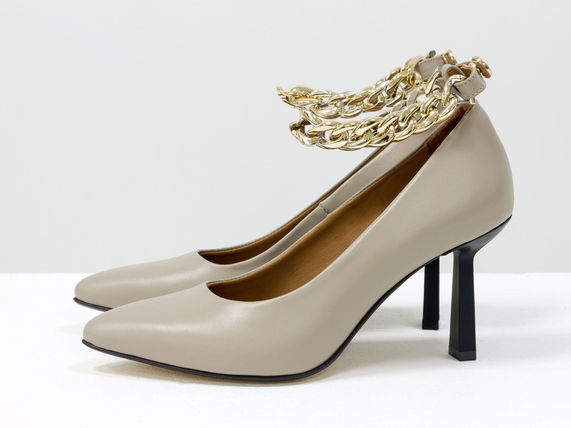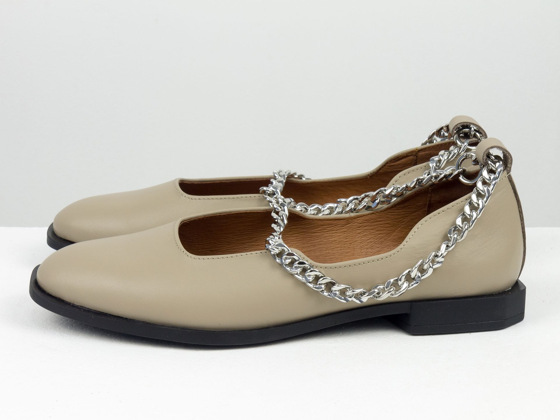 Женские бежевые туфли на низком ходу из натуральной кожи с цепочкой Gino Figini