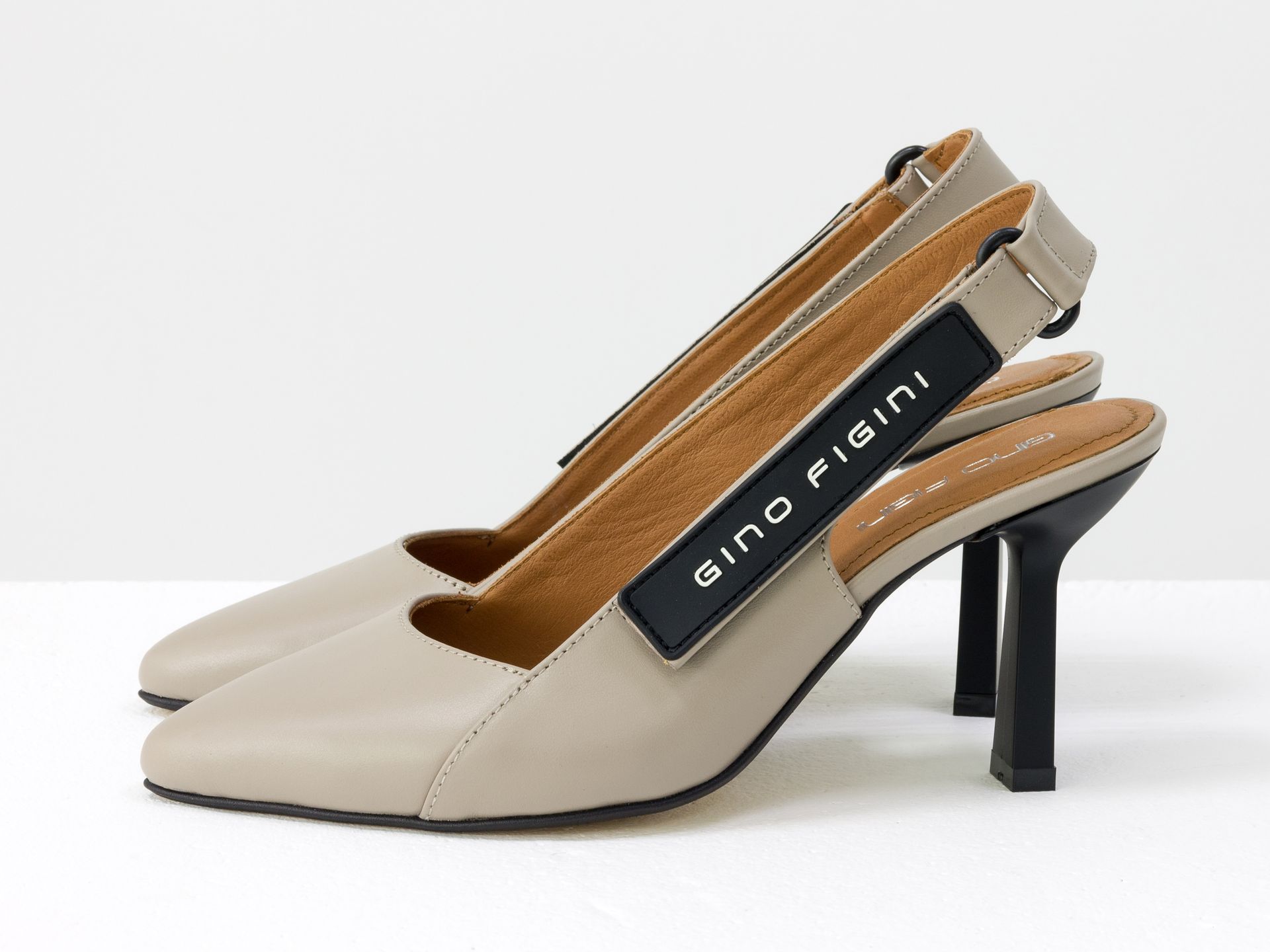 Дизайнерские туфли лодочки с открытой пяткой из натуральной итальянской кожи бежевого цвета Gino Figini