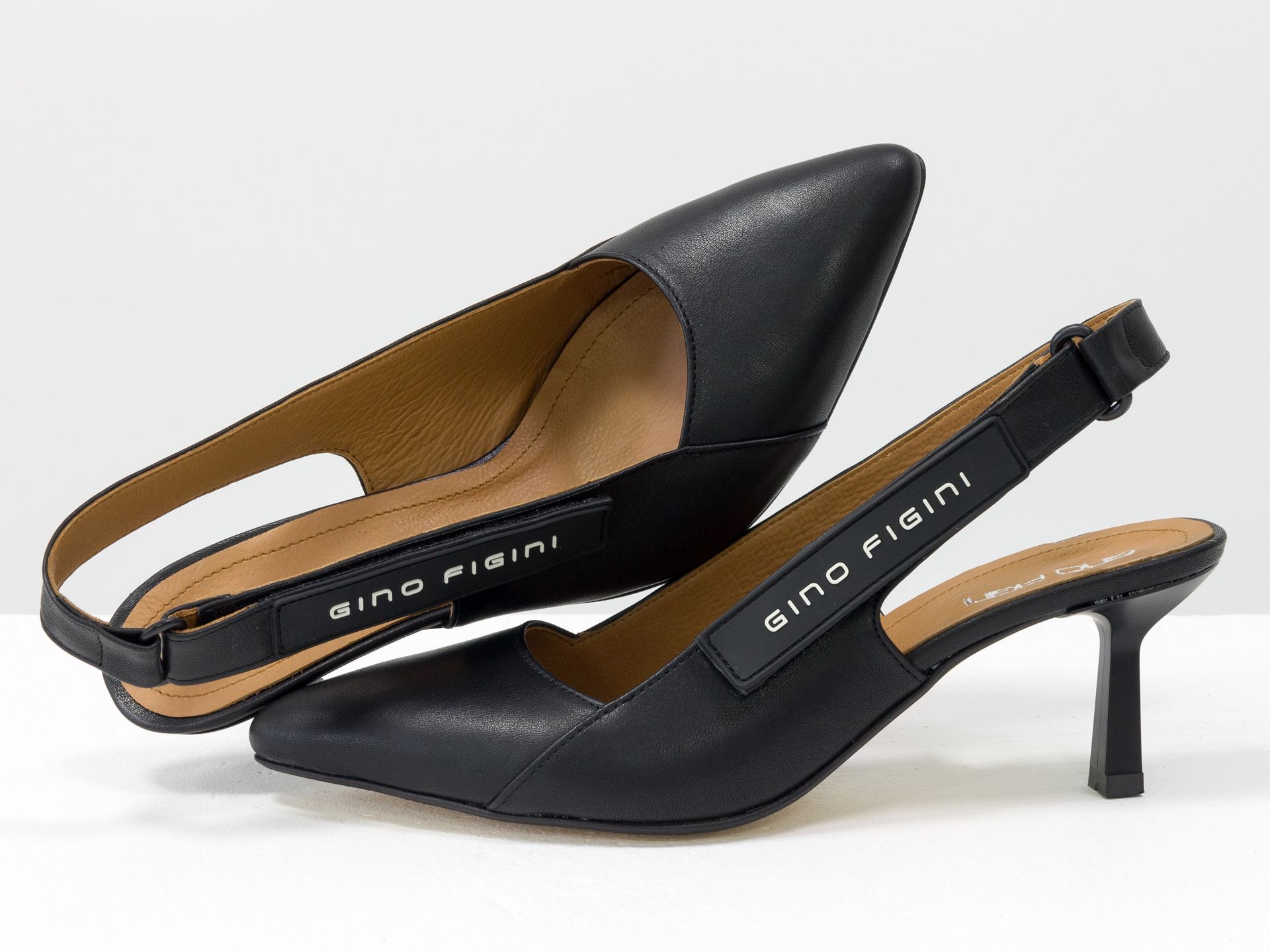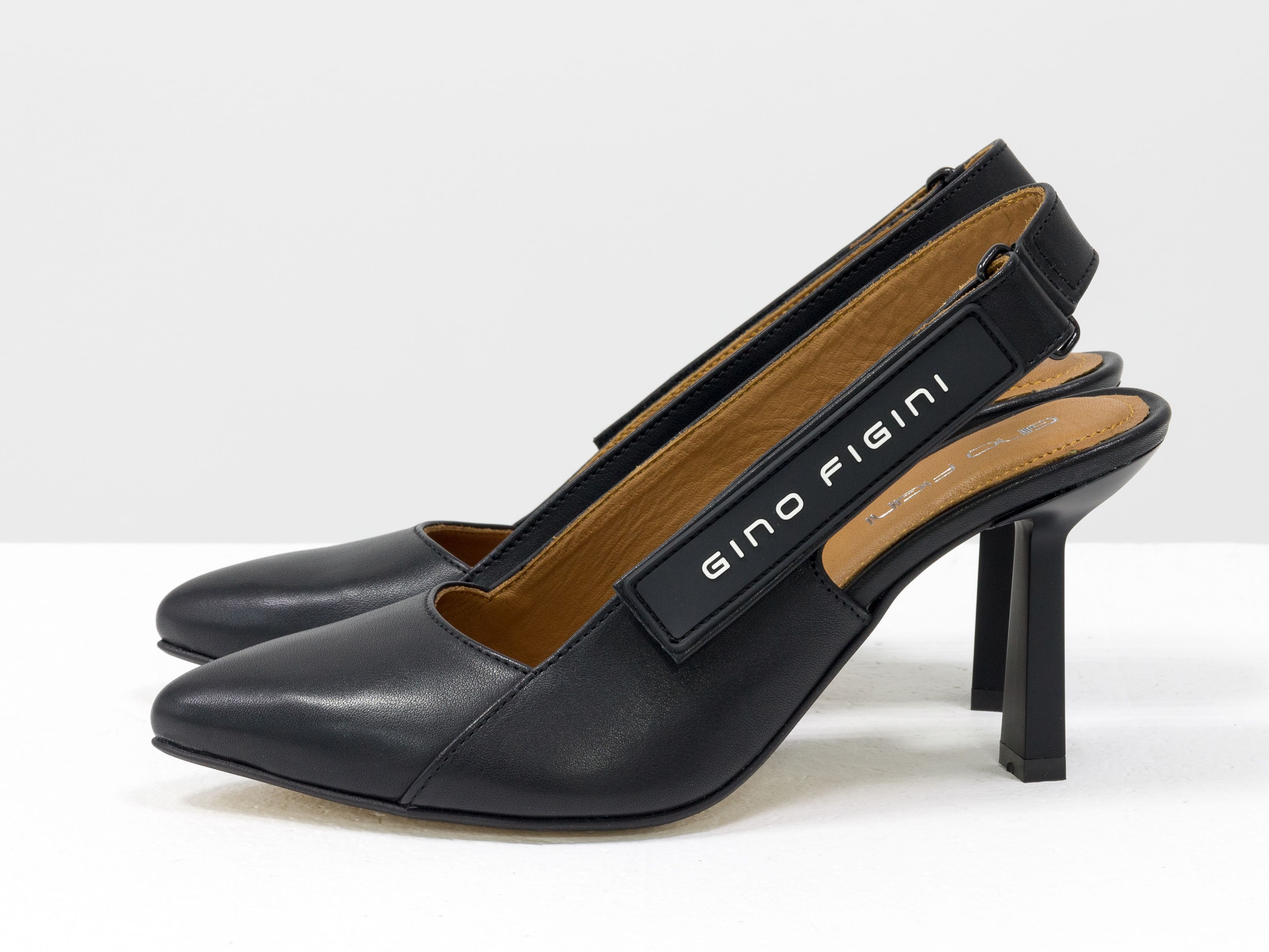 Дизайнерские туфли лодочки с открытой пяткой из натуральной итальянской кожи черного цвета Gino Figini