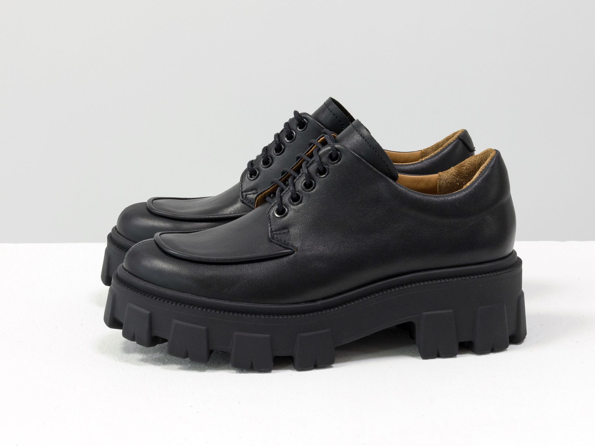 Женские туфли, которые сочетают в себе стиль дерби и лоферов на утолщенной тракторной подошве из натуральной кожи Gino Figini