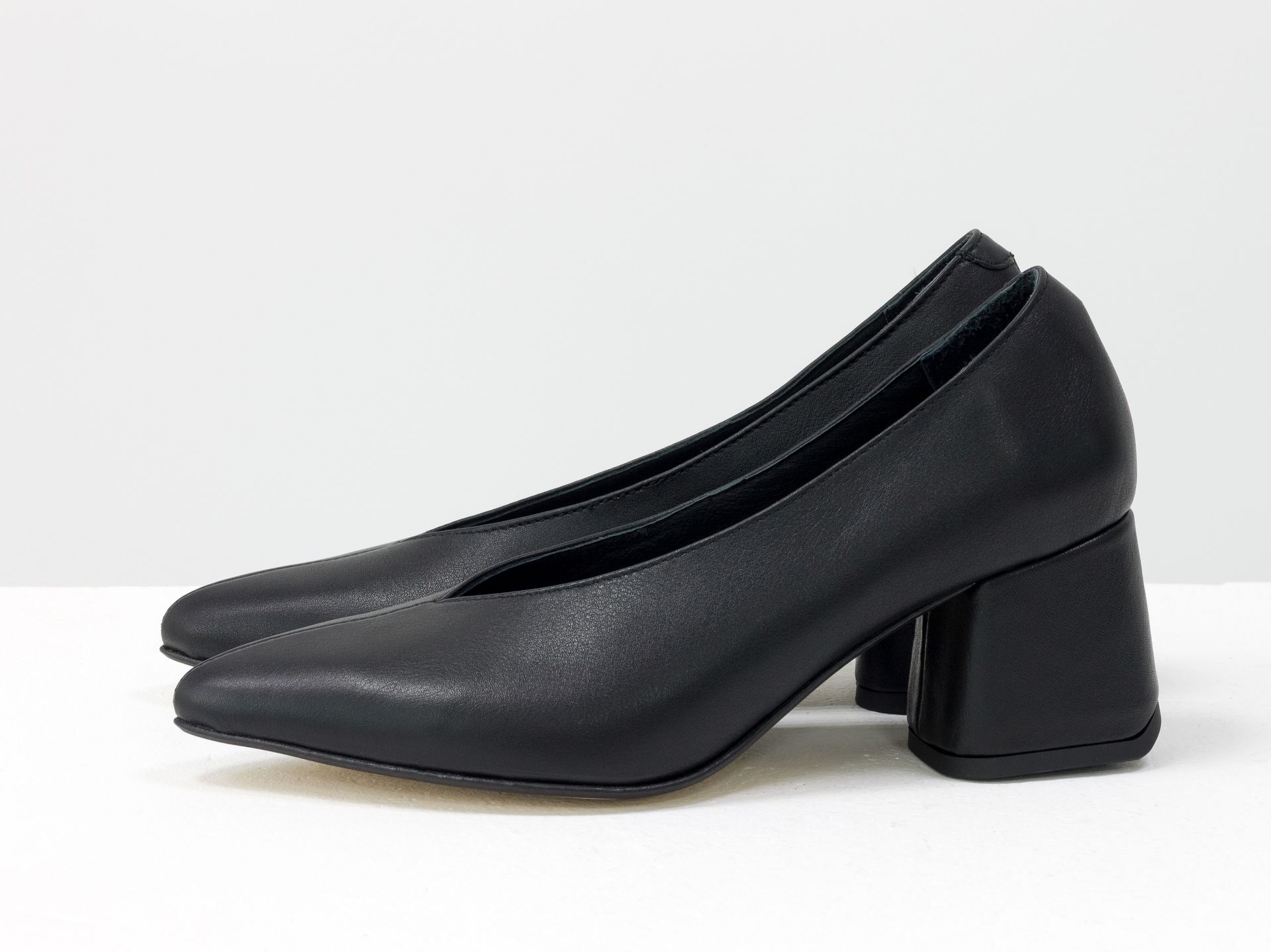 Дизайнерские туфли лодочки на каблуке из натуральной итальянской кожи черного цвета Gino Figini