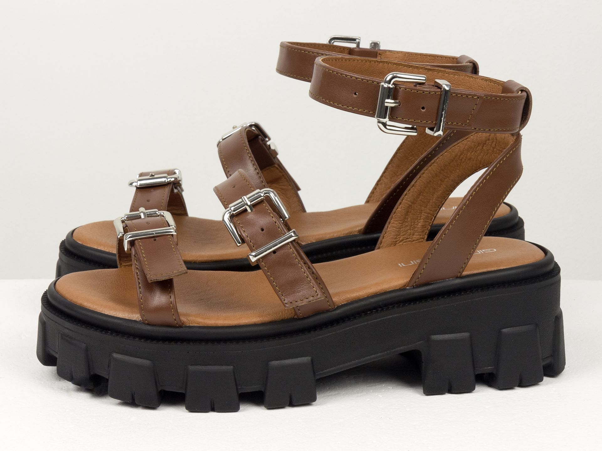 Женские коричневые босоножки на утолщенной подошве из натуральной кожи Gino Figini