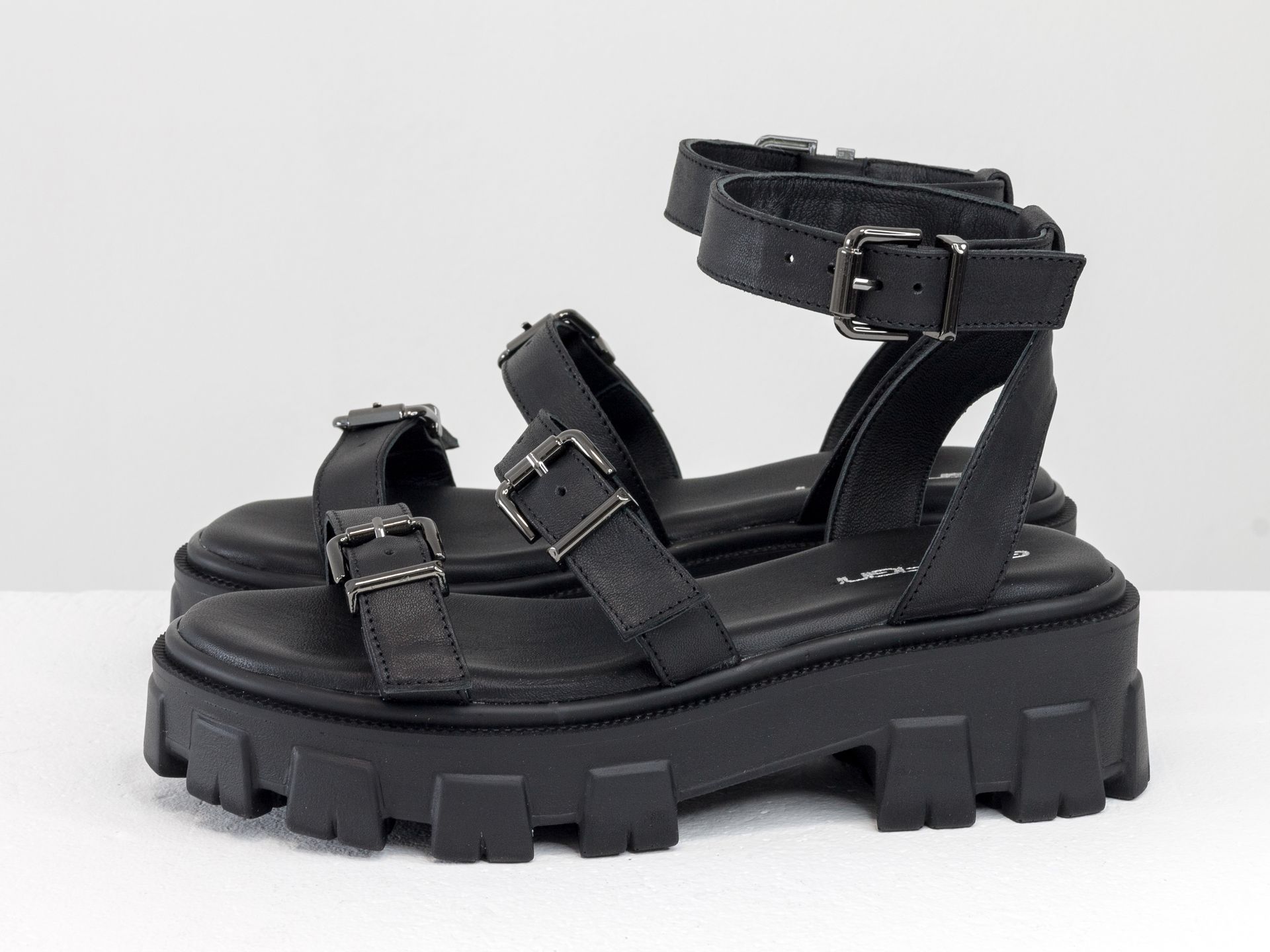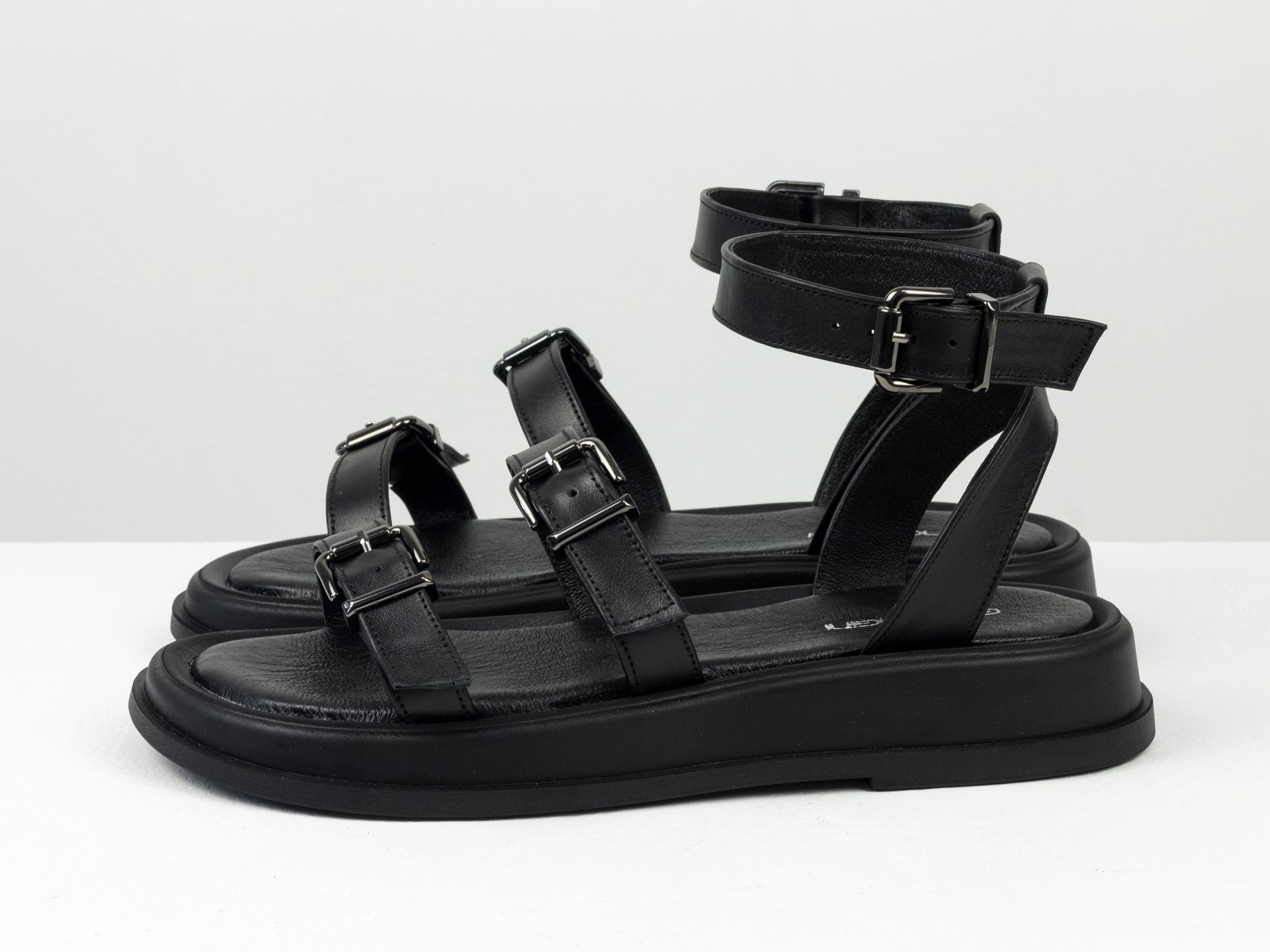 Женские черные босоножки на утолщенной подошве из натуральной кожи Gino Figini