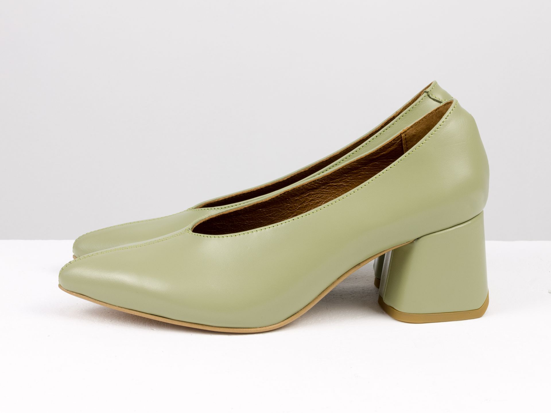 Дизайнерские туфли-перчатки на невысоком обтяжном каблуке из натуральной итальянской кожи цвета авокадо Gino Figini