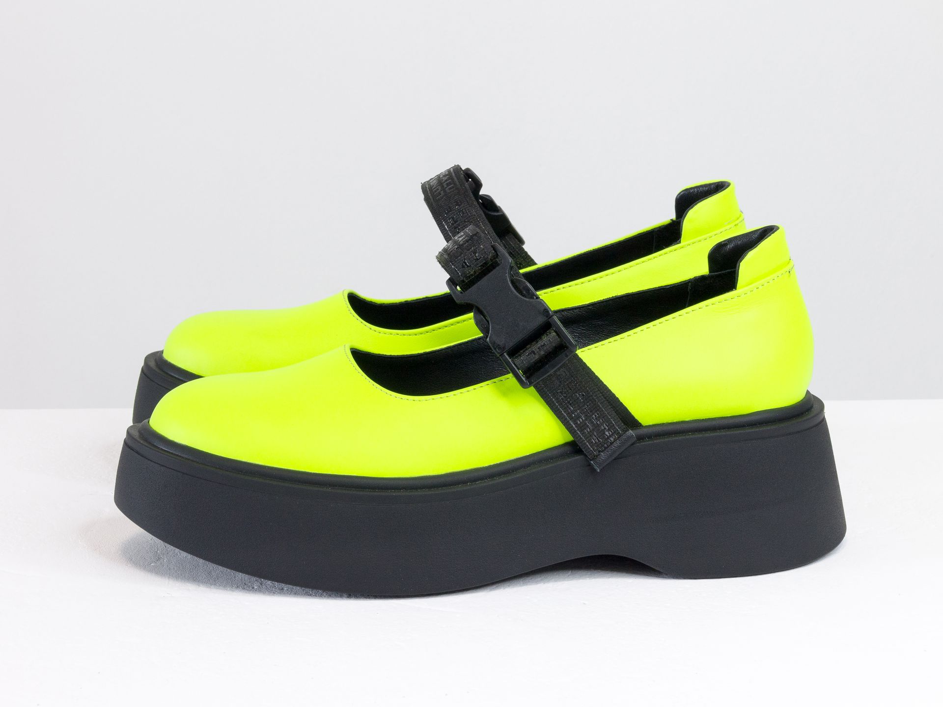 Женские салатовые неоновые туфли на из натуральной кожи на утолщенной черной подошве Gino Figini