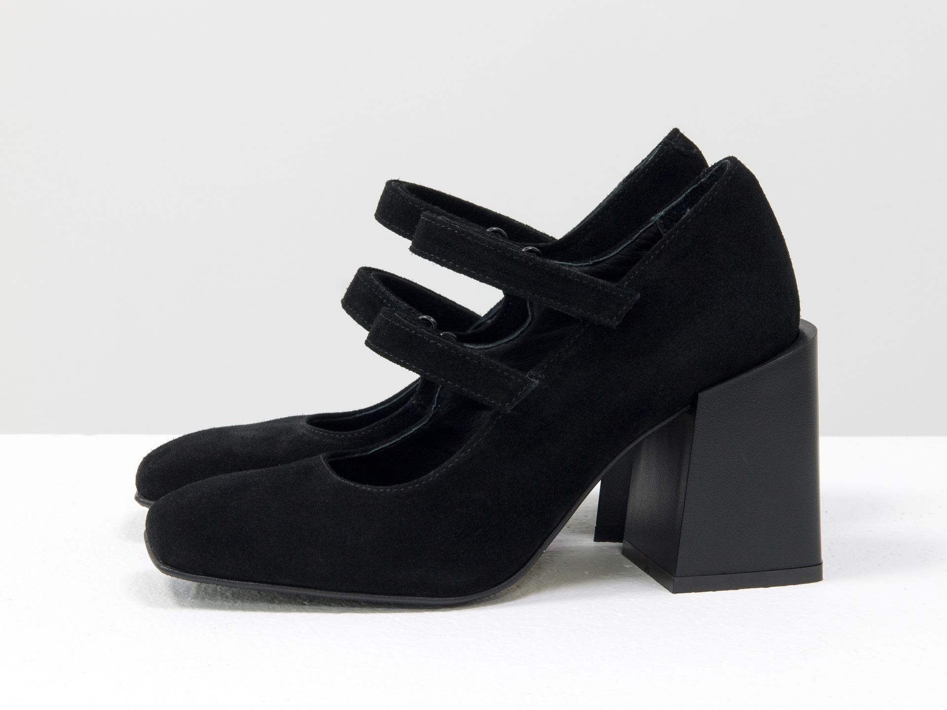 Дизайнерские туфли из натуральной черной замши на устойчивом квадратном каблуке Gino Figini