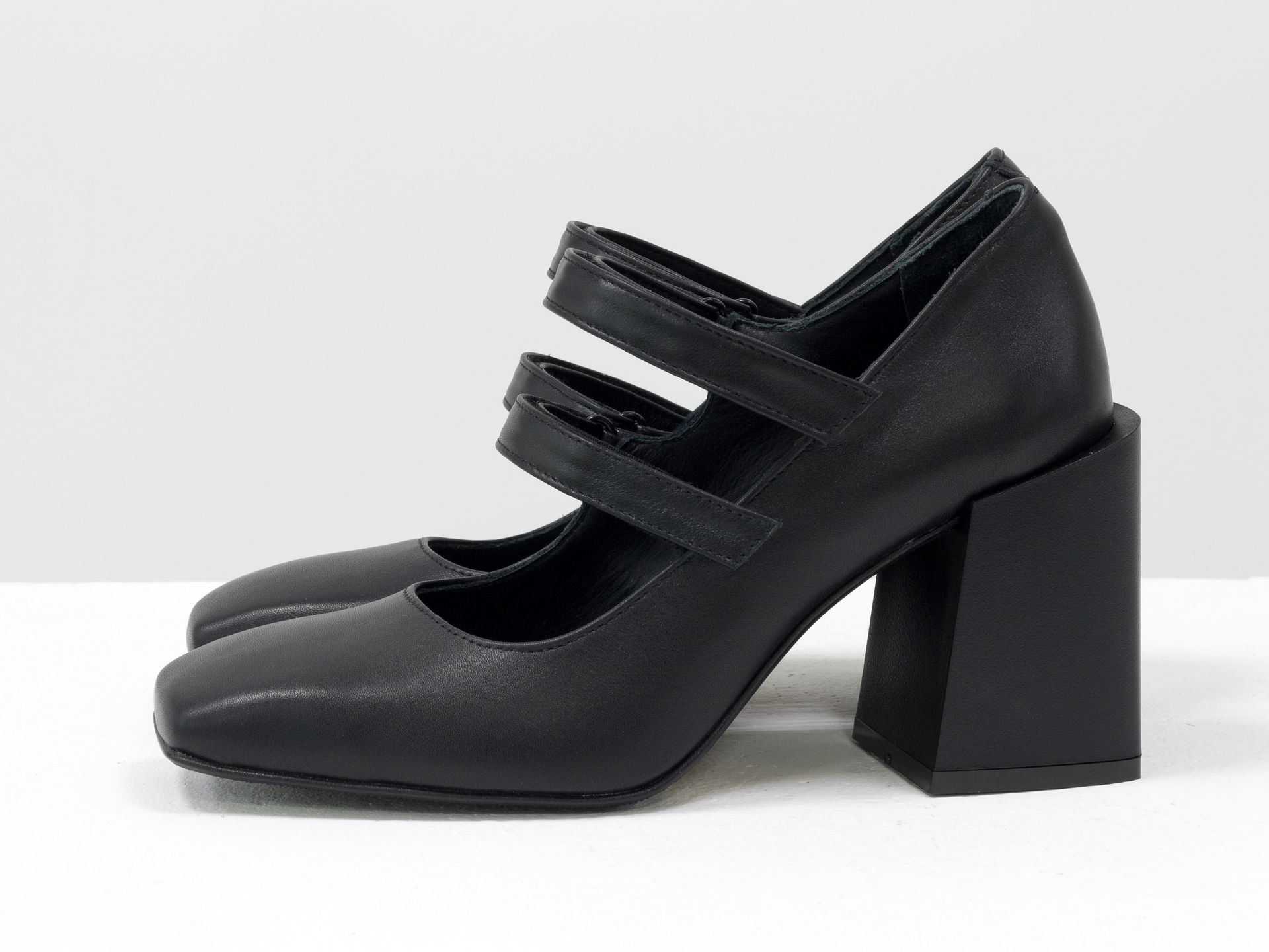 Дизайнерские туфли из натуральной черной кожи на устойчивом квадратном каблуке Gino Figini