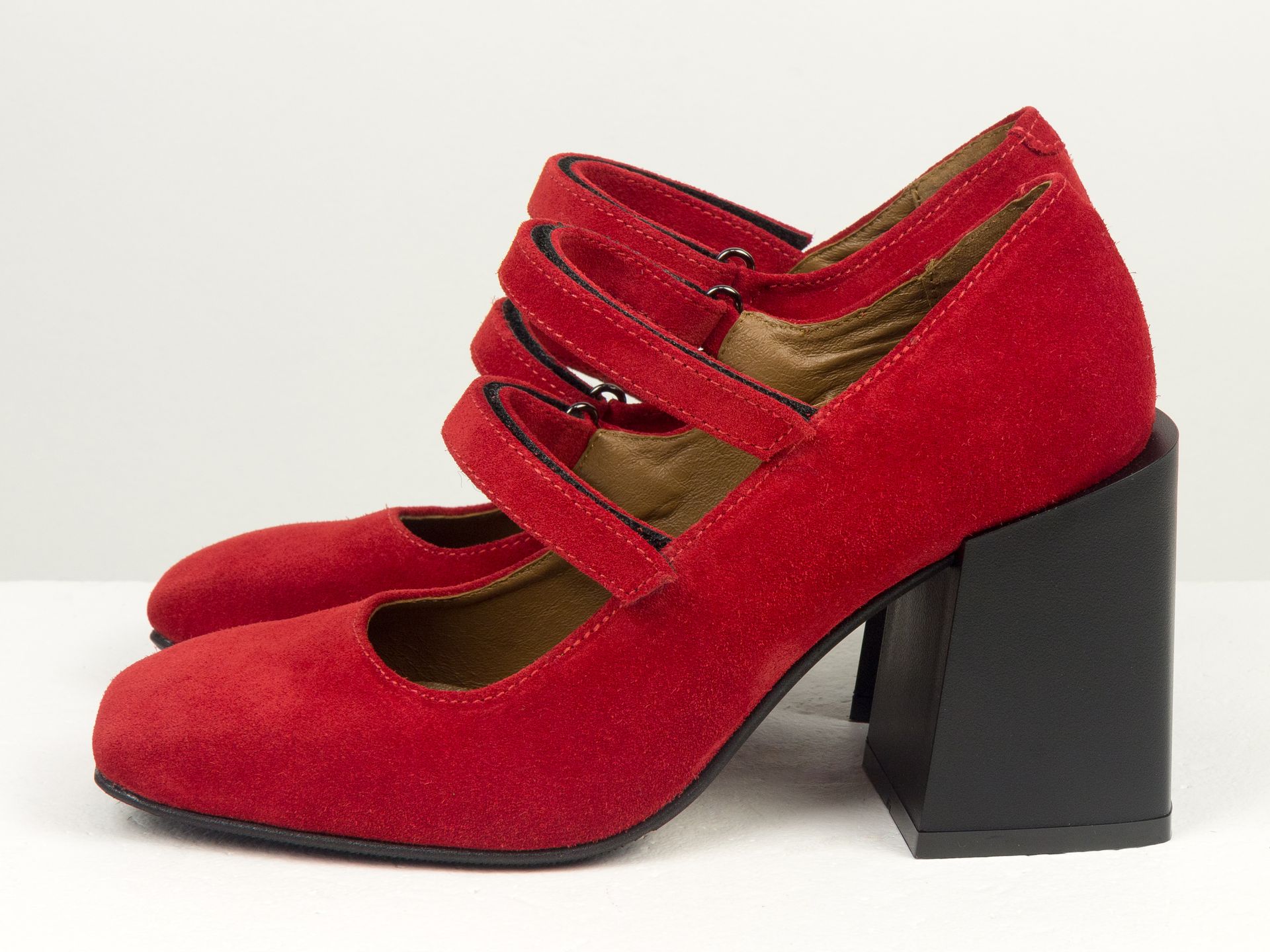 Дизайнерские туфли из натуральной красной замши на устойчивом квадратном каблуке Gino Figini