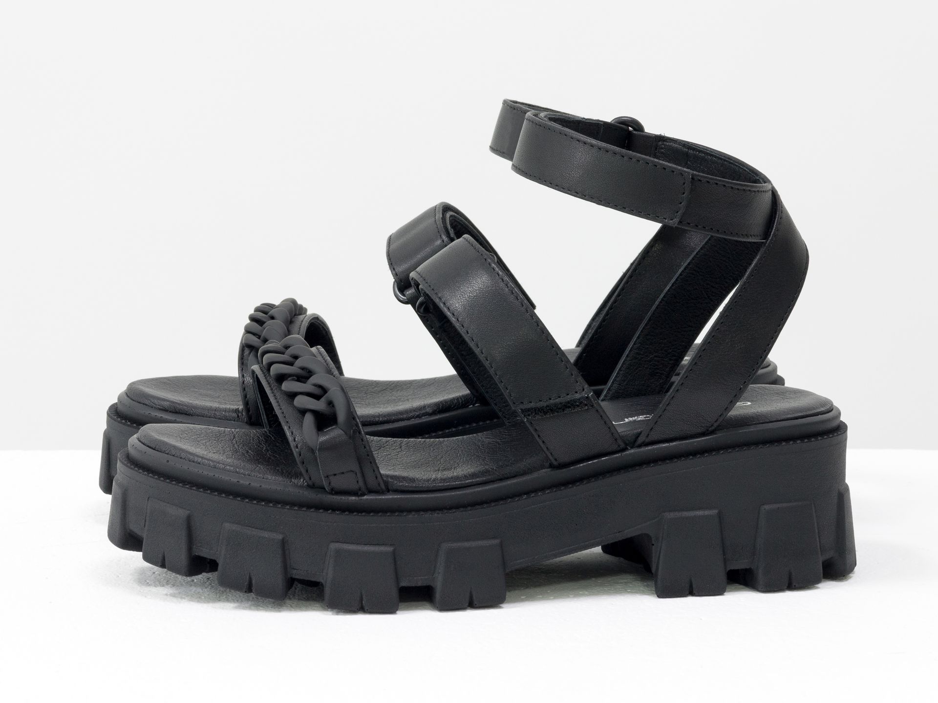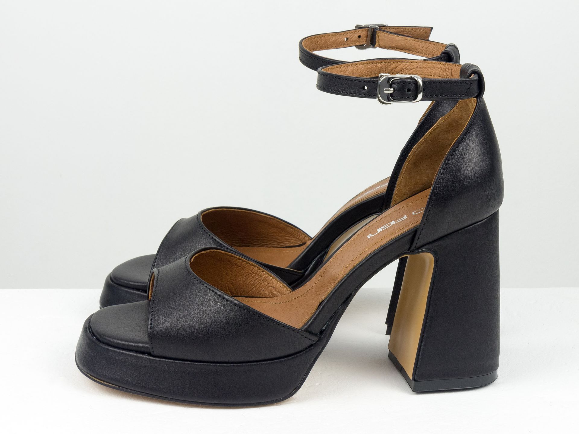 Женские черные босоножки на утолщенной подошве из натуральной кожи Gino Figini