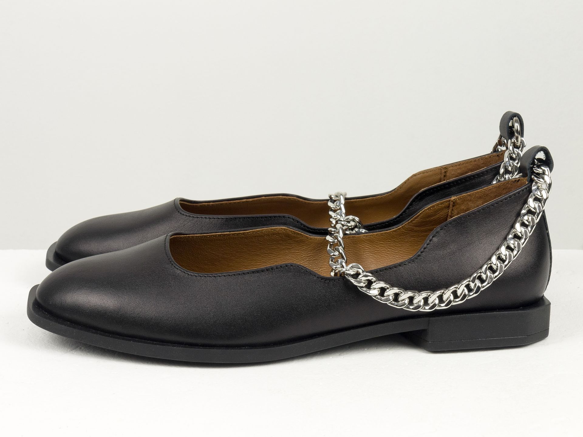Женские черные туфли на низком каблуке из натуральной кожи с цепочкой Gino Figini