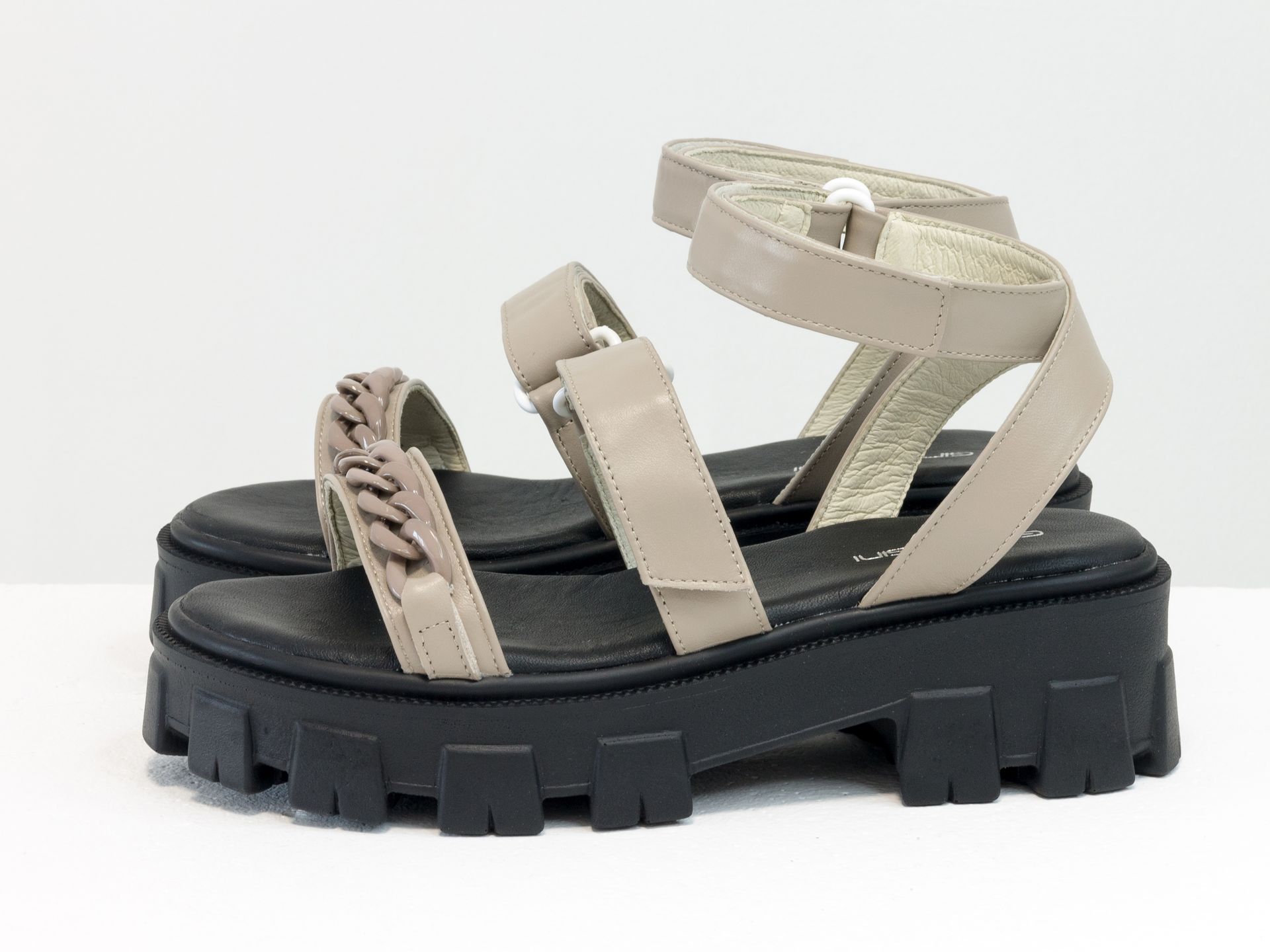 Женские бежевые босоножки на утолщенной подошве из натуральной кожи Gino Figini