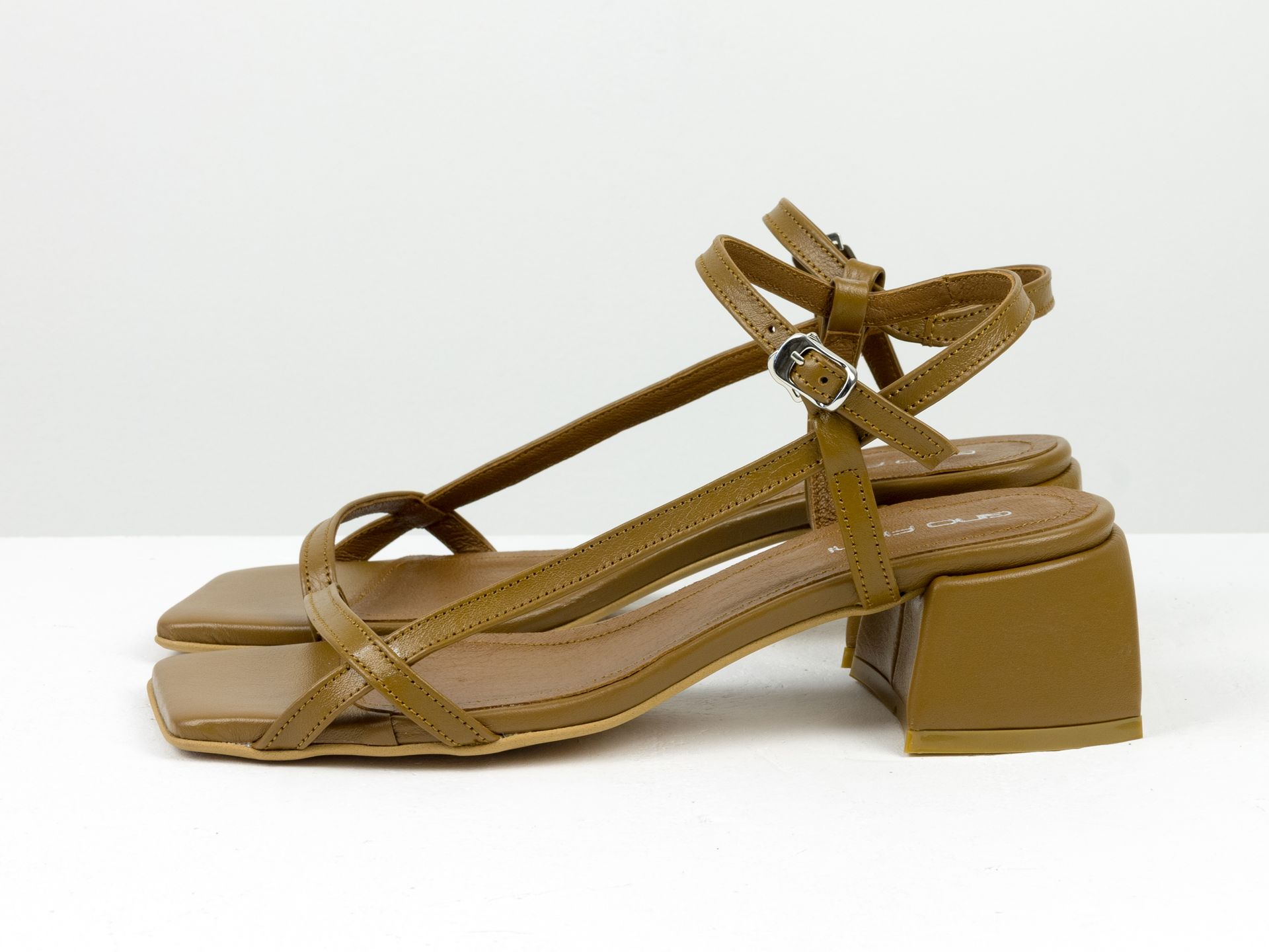 Дизайнерские карамельные босоножки на каблуке из натуральной итальянской кожи Gino Figini