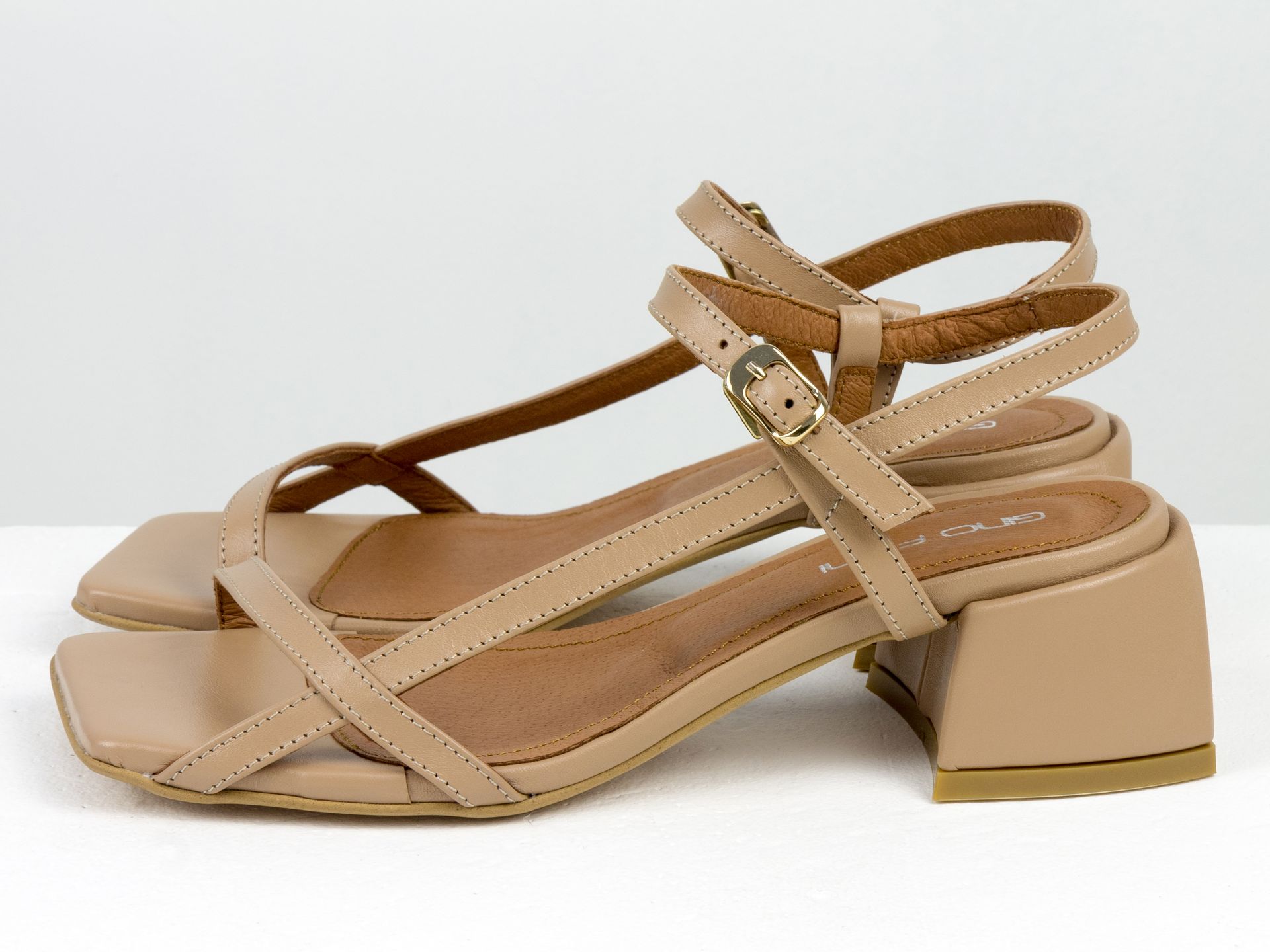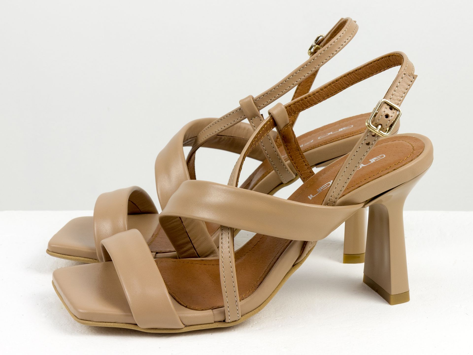 Дизайнерские босоножки на каблуке из натуральной итальянской кожи цвета капучино Gino Figini