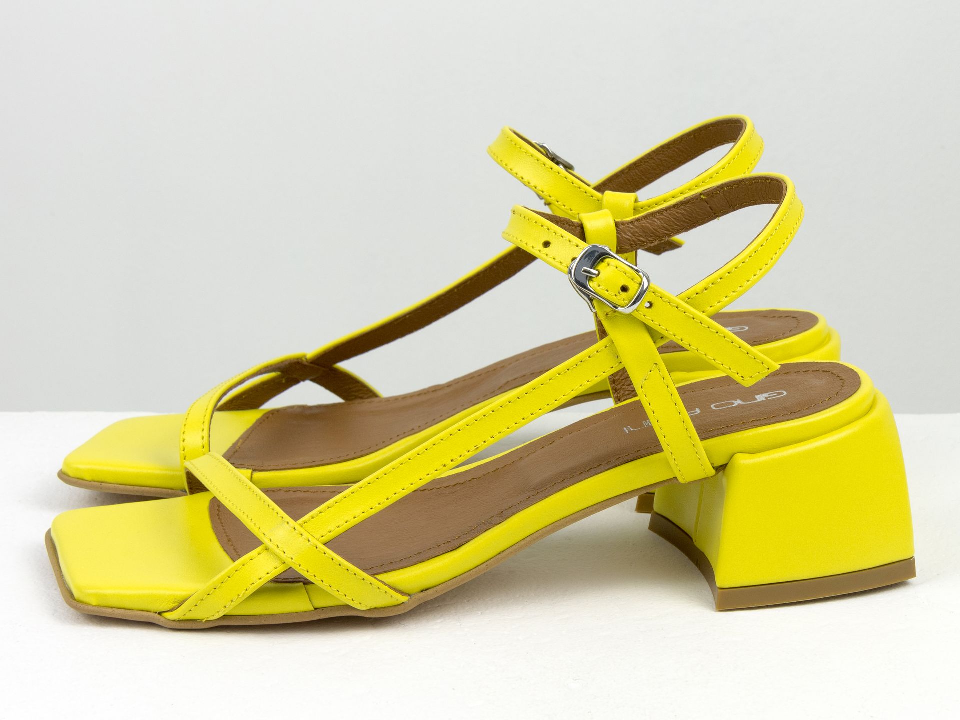 Дизайнерские желтые босоножки на каблуке из натуральной итальянской кожи Gino Figini