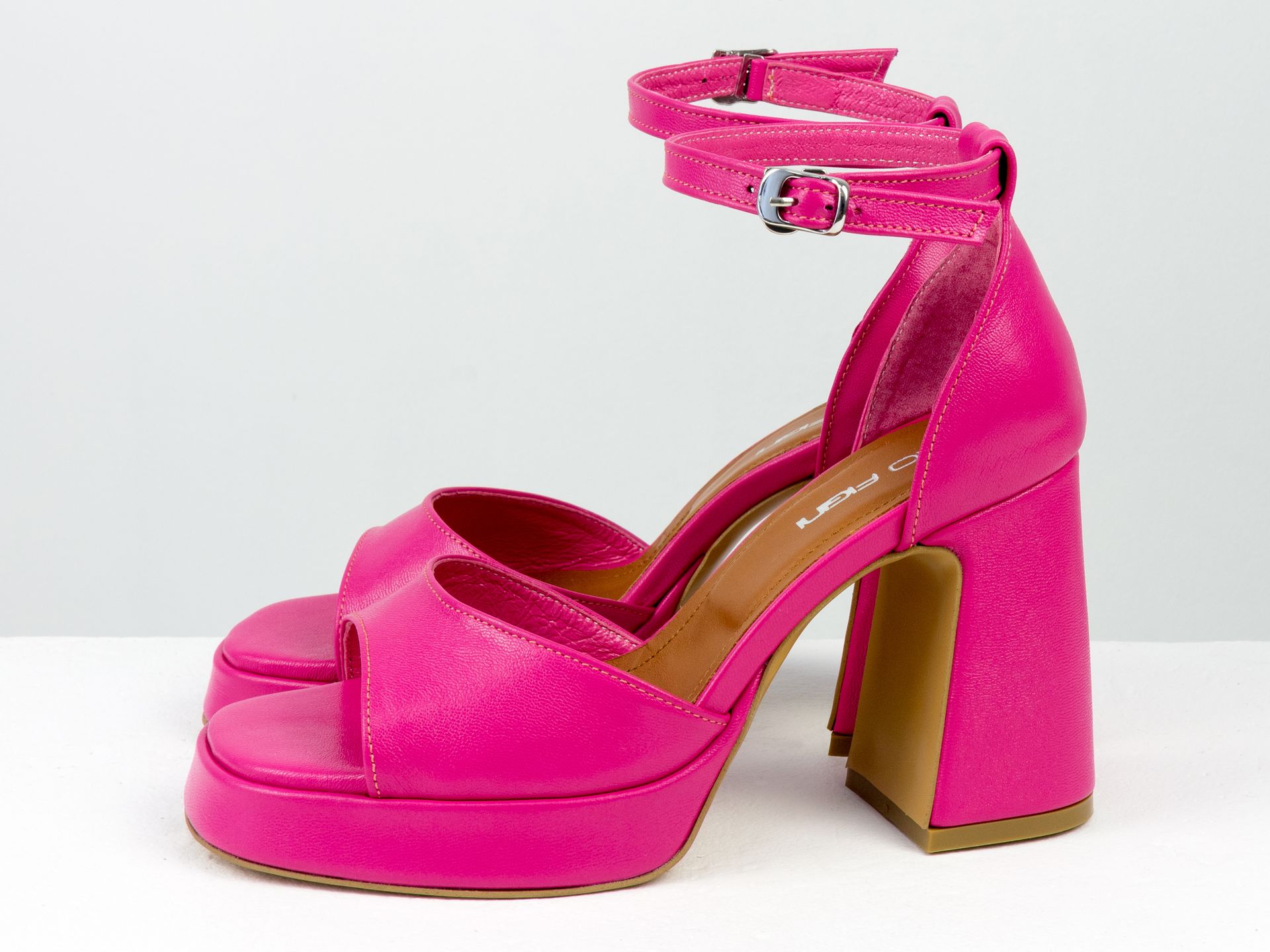 Дизайнерские босоножки на обтяжном каблуке из натуральной итальянской кожи цвета фуксия Gino Figini