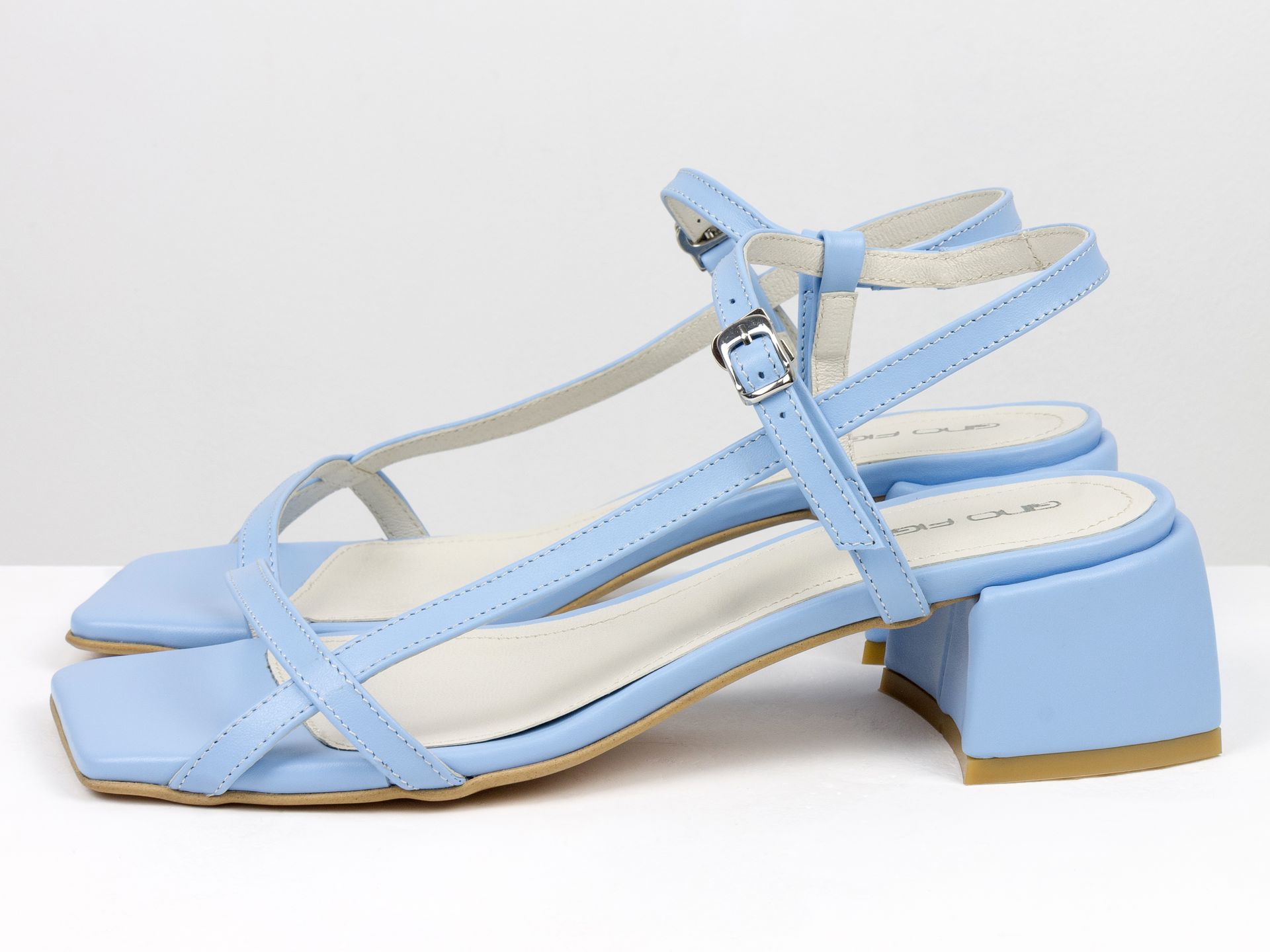 Дизайнерские голубые босоножки на каблуке из натуральной итальянской кожи Gino Figini